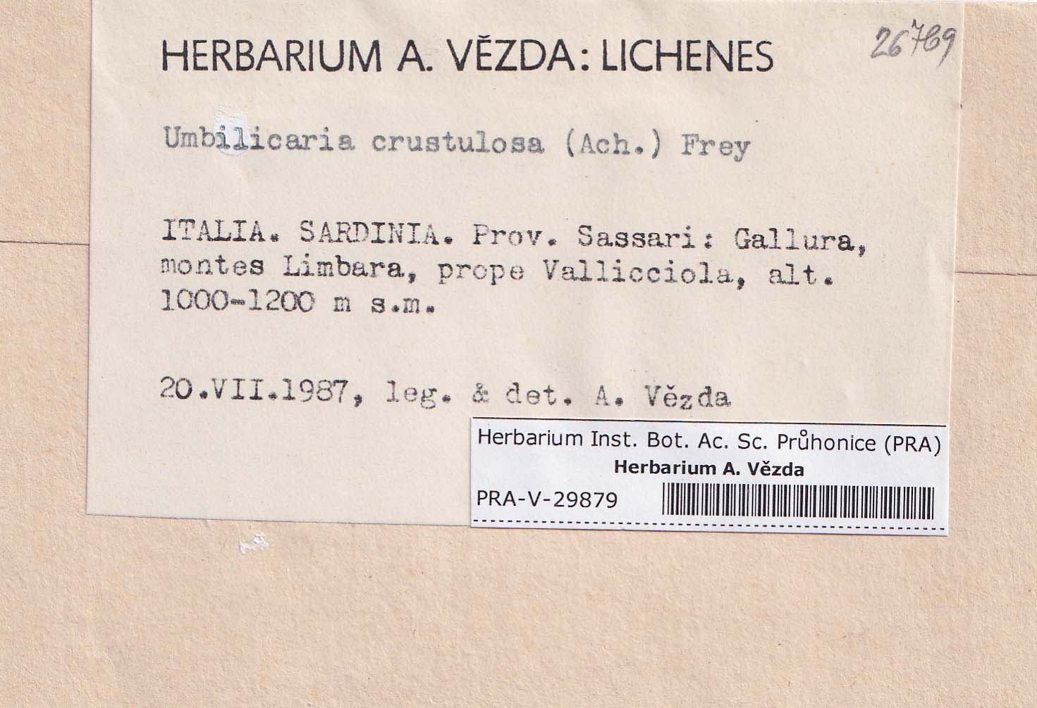 - Deposited in parcel no. 86 Umbilicaria A-H