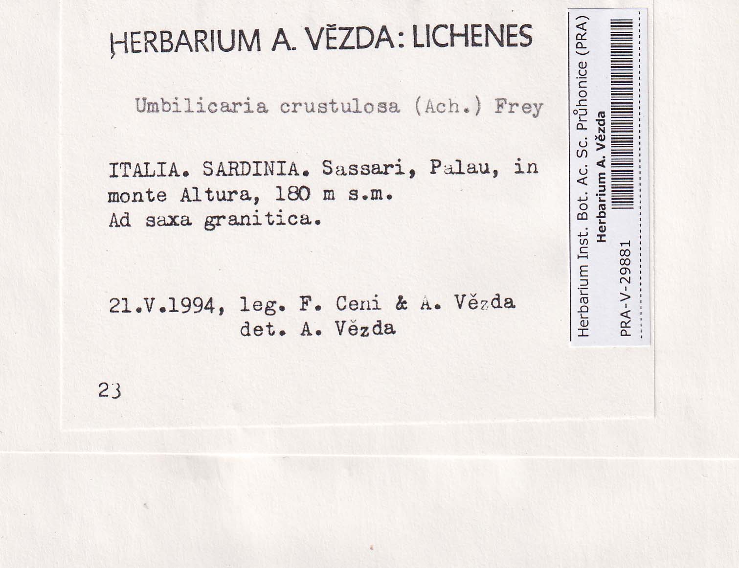 - Deposited in parcel no. 86 Umbilicaria A-H