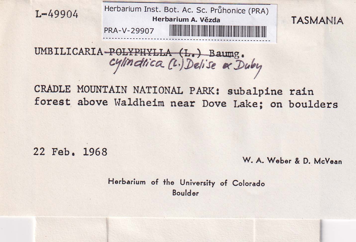 - Deposited in parcel no. 86 Umbilicaria A-H