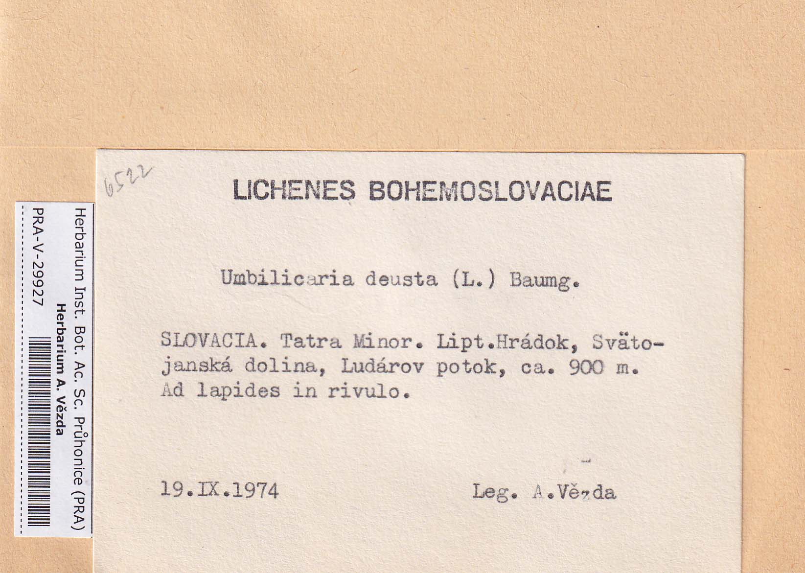 - Deposited in parcel no. 86 Umbilicaria A-H