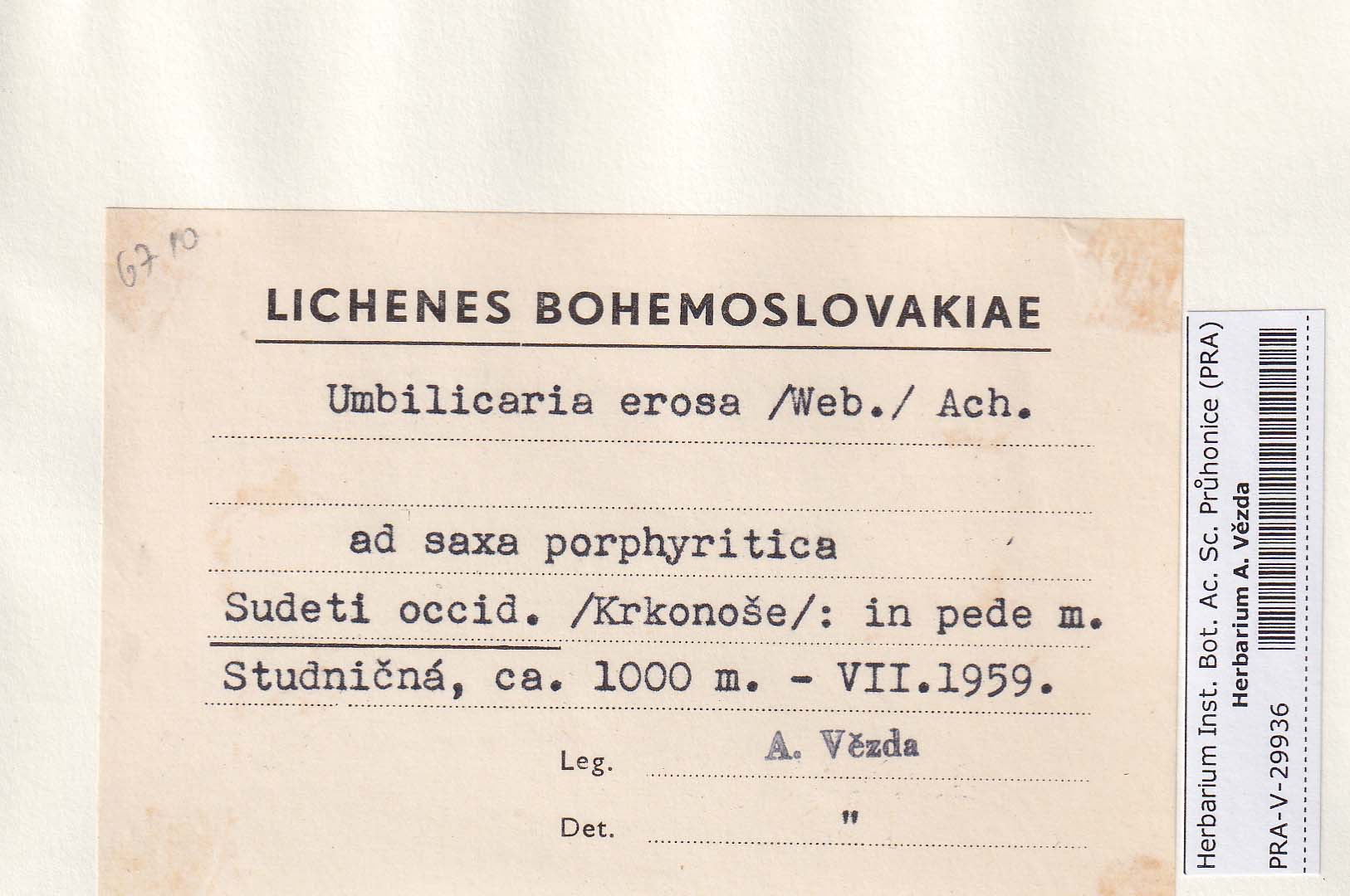 - Deposited in parcel no. 86 Umbilicaria A-H