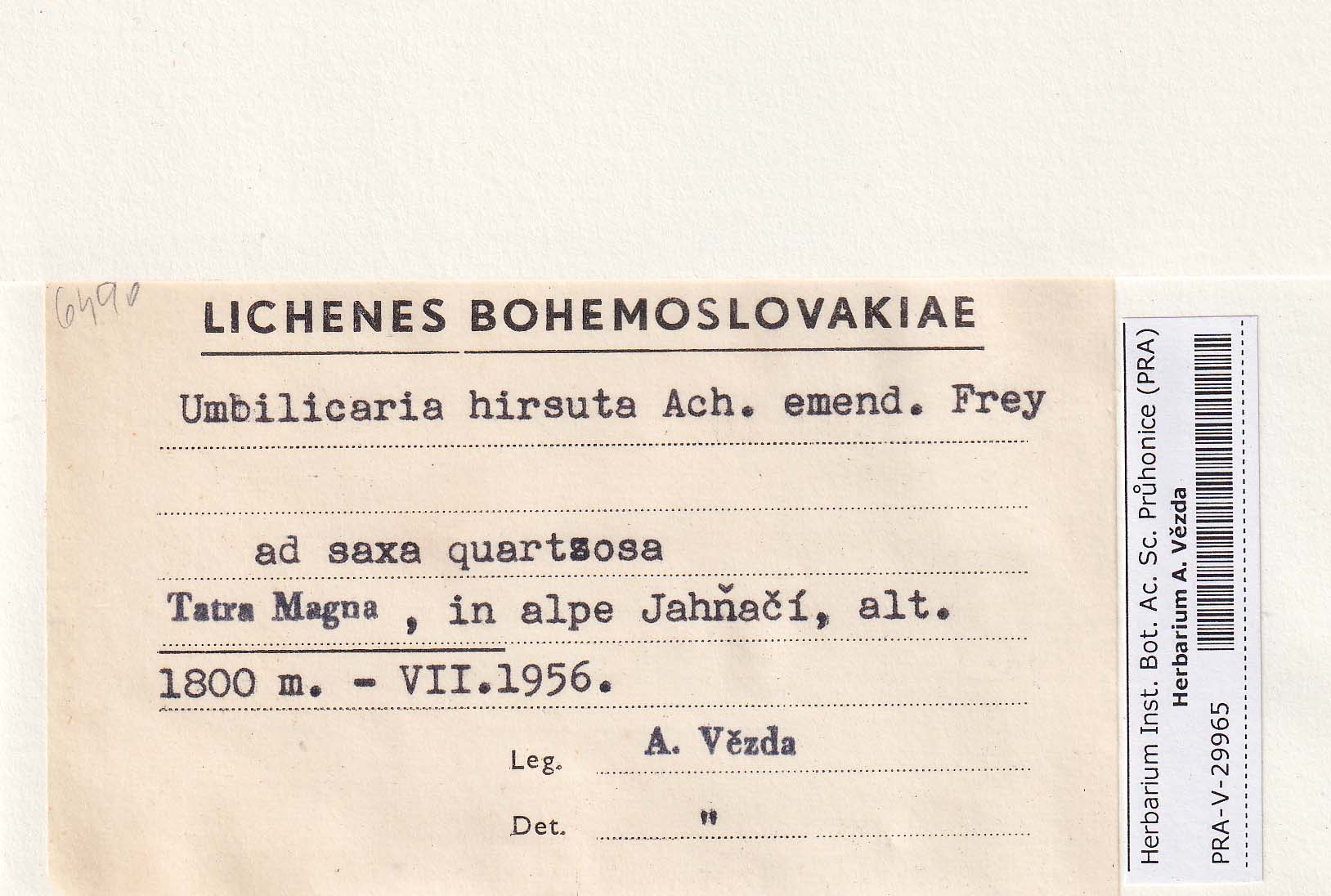 - Deposited in parcel no. 86 Umbilicaria A-H