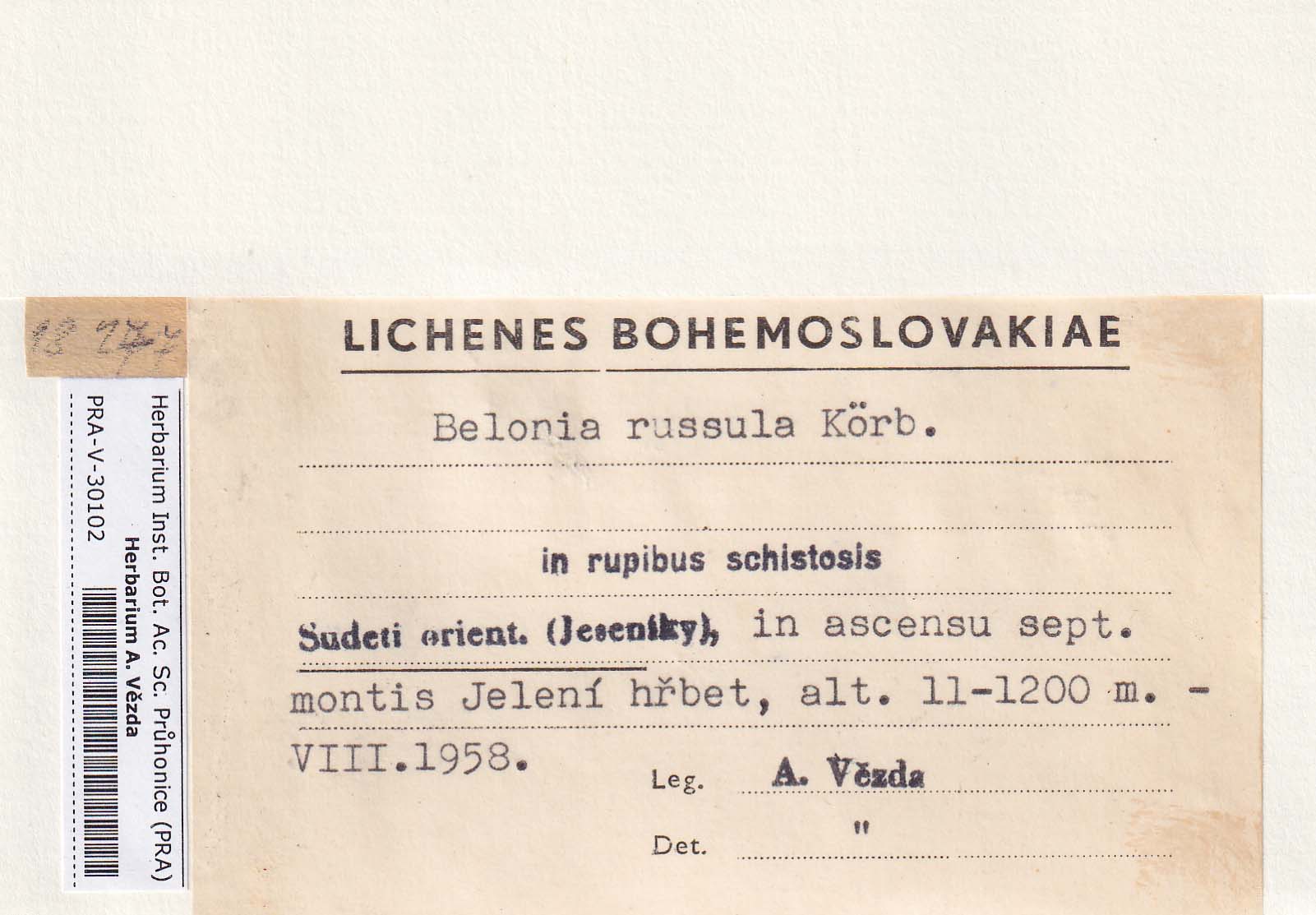 - Notes - specimen (NOT printed on the scheda)