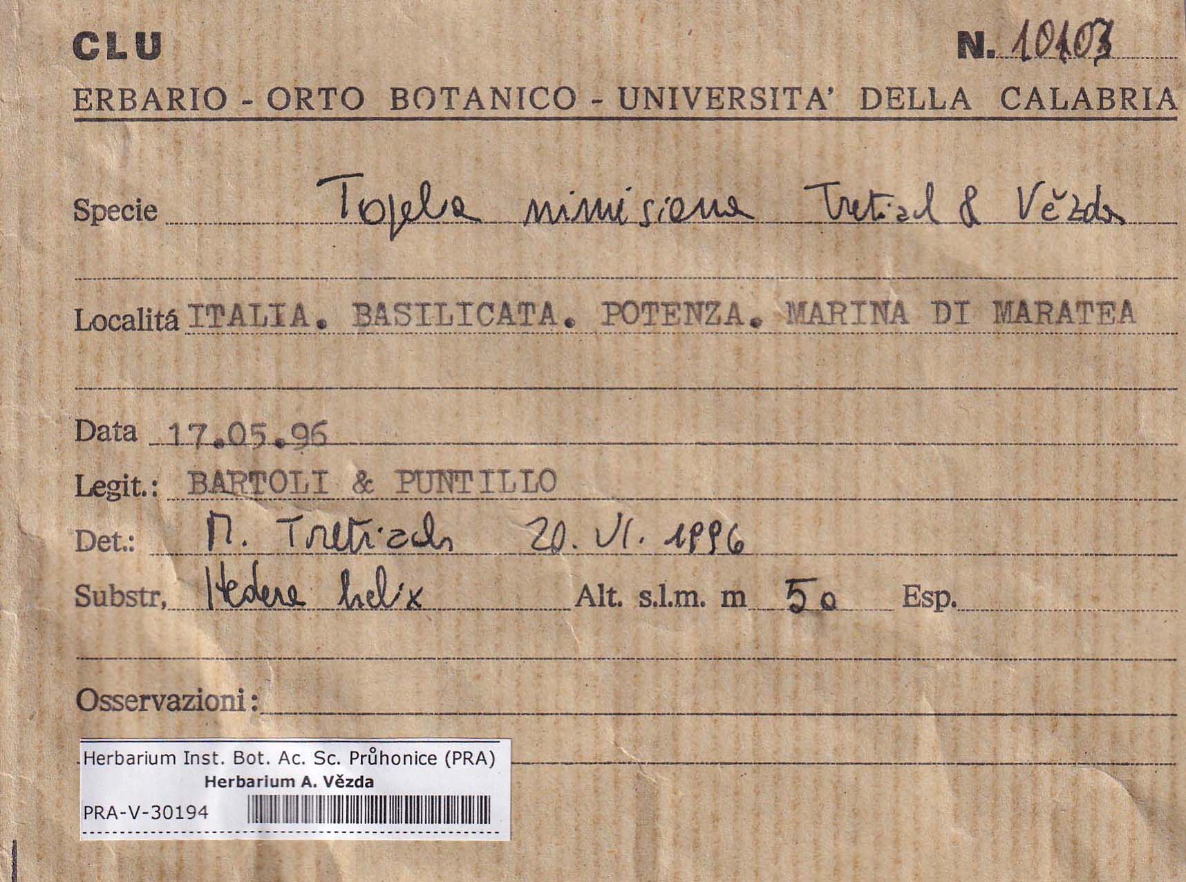 - Notes - specimen (NOT printed on the scheda)