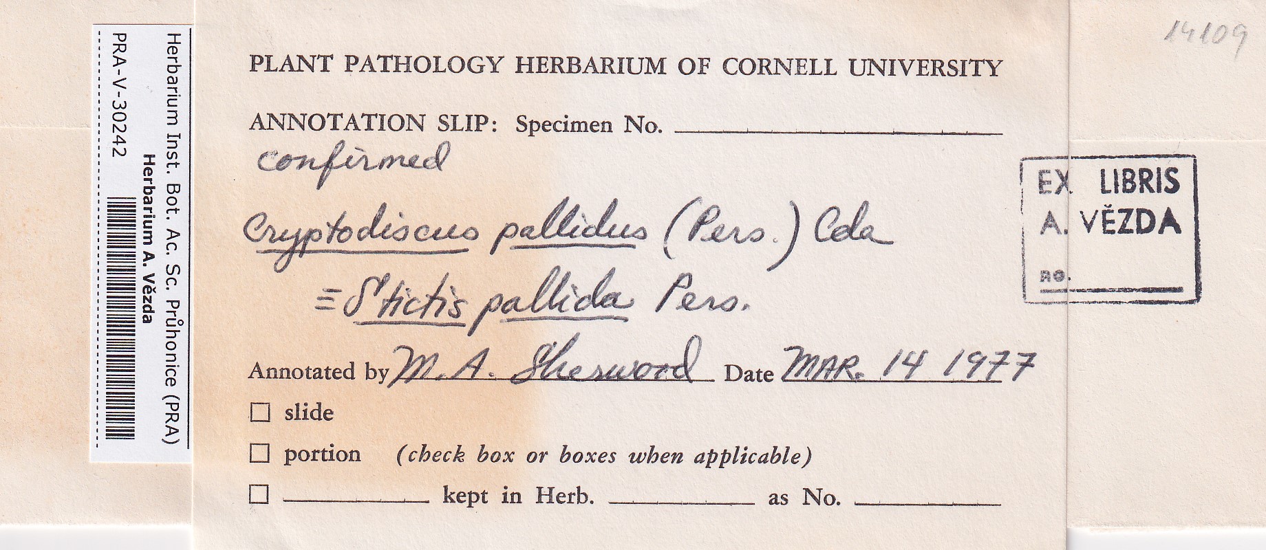 - Annotated by M. A. Sherwood. Date 14. 3. 1977.