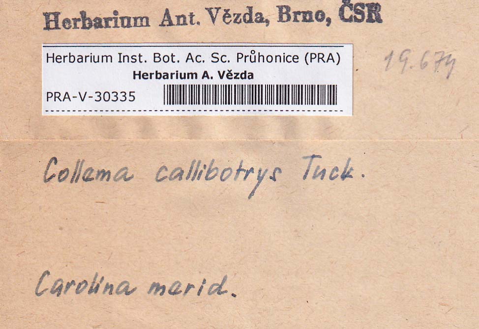 - Deposited in parcel no. 93 Collema A-O,Dichodium, Hydrothyria