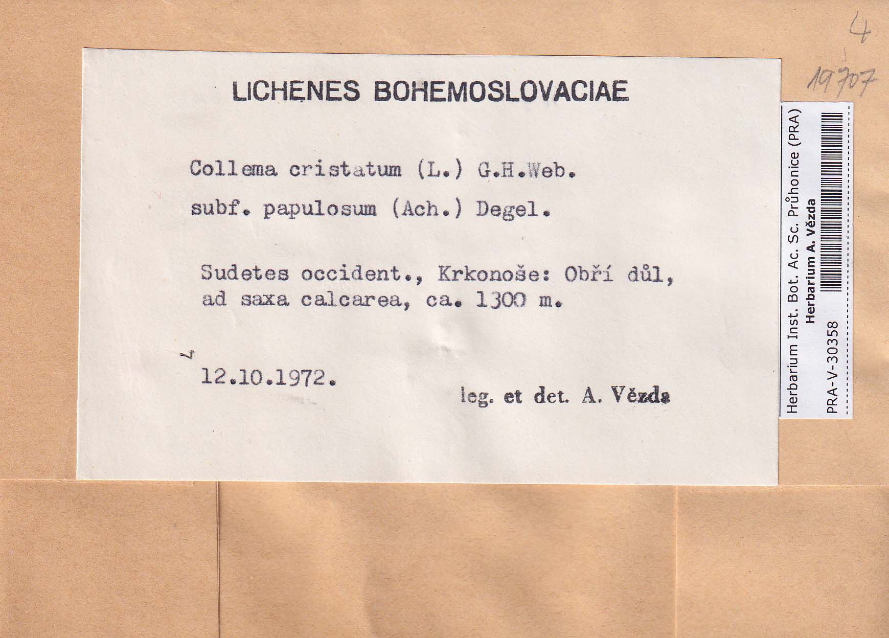 - Deposited in parcel no. 93 Collema A-O,Dichodium, Hydrothyria