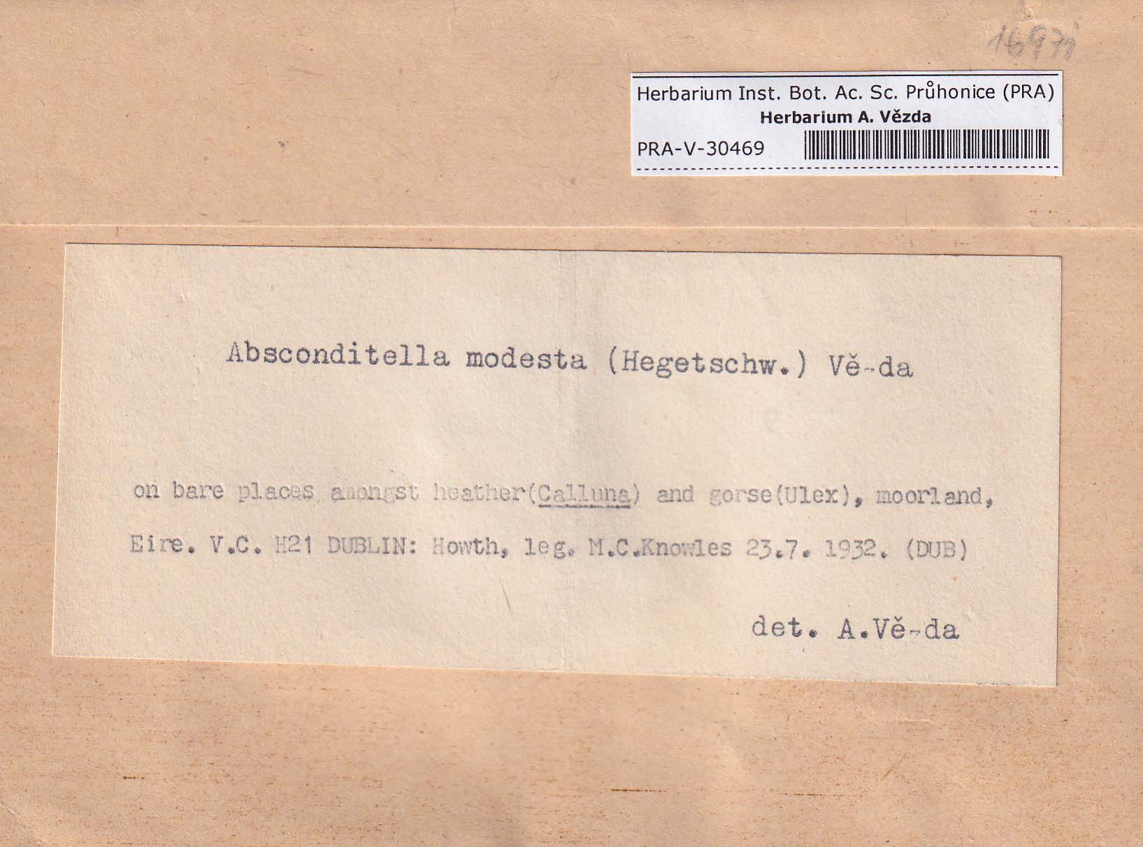 - Deposited in parcel no.94 Absconditella,Coenogonium,Pachyphiale