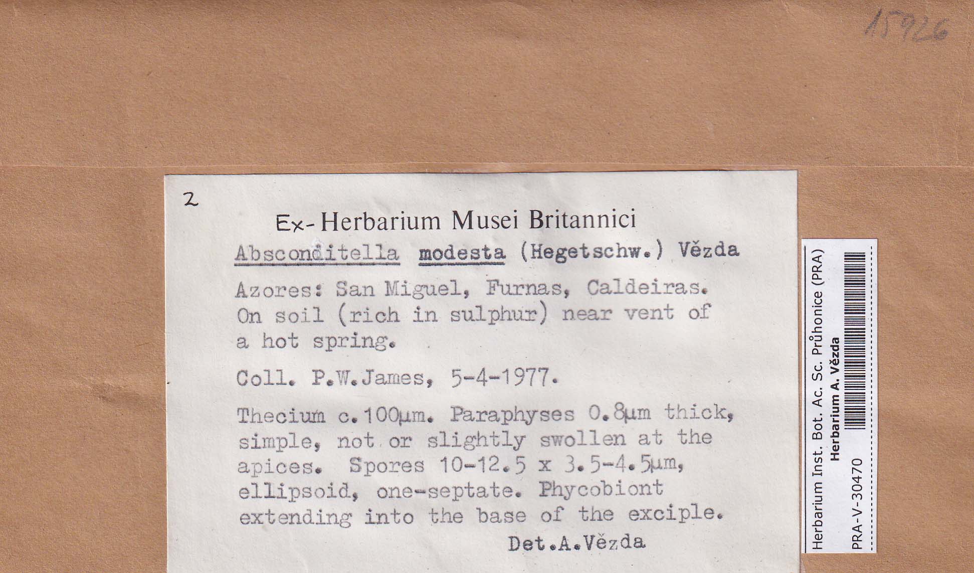 - Deposited in parcel no.94 Absconditella,Coenogonium,Pachyphiale