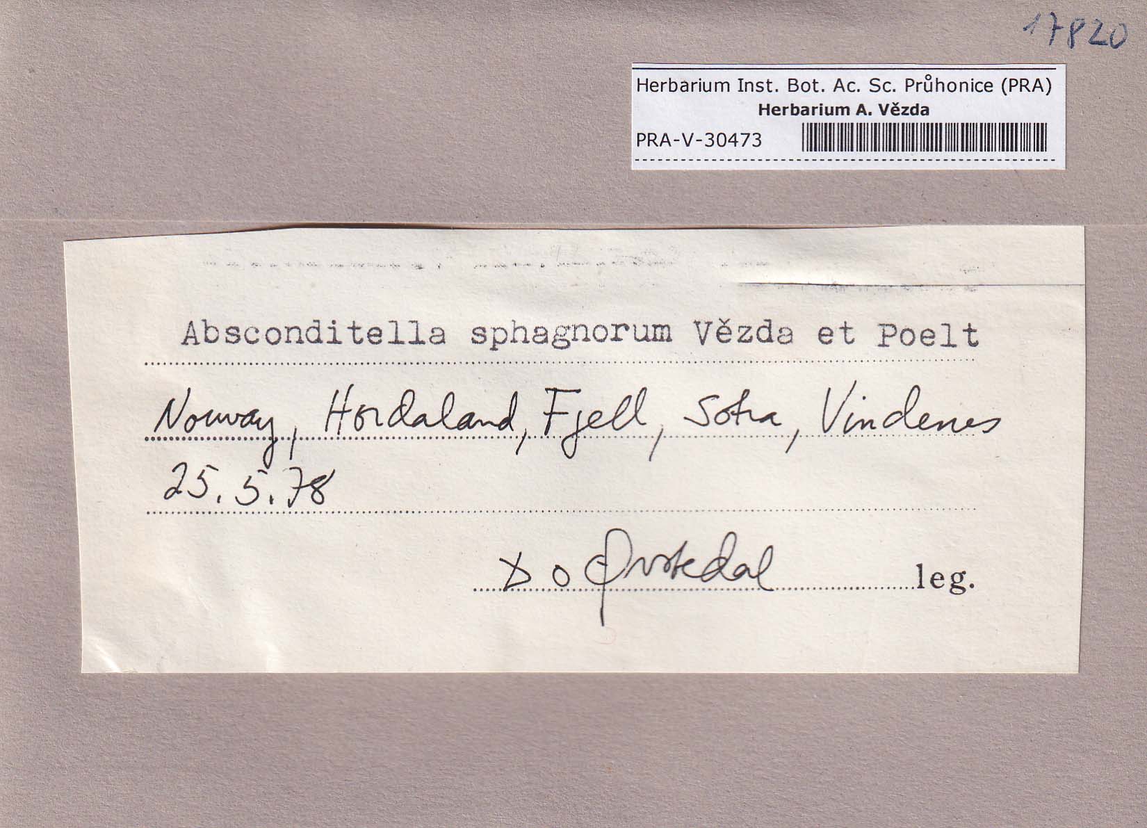 - Deposited in parcel no.94 Absconditella,Coenogonium,Pachyphiale
