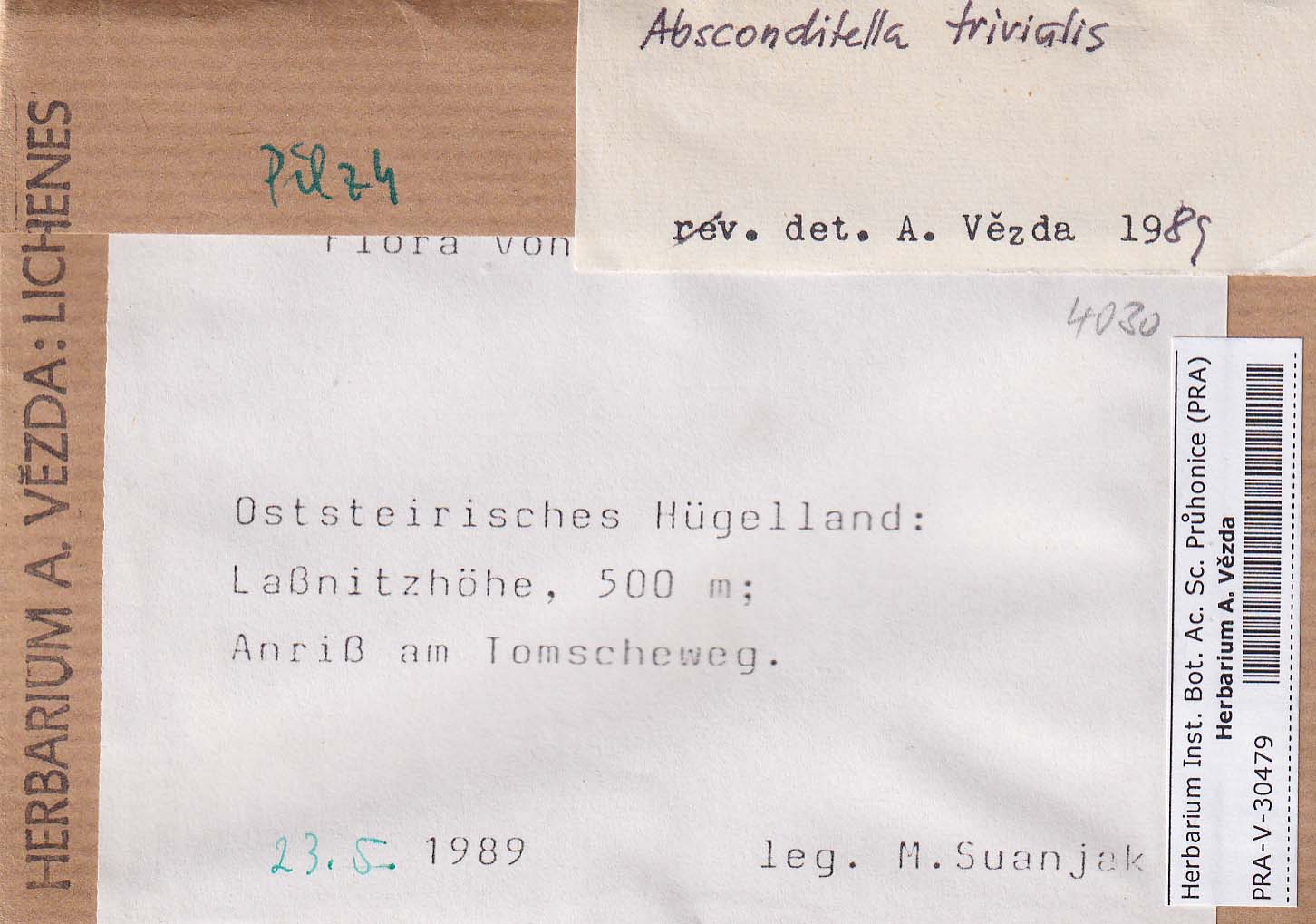 - Deposited in parcel no.94 Absconditella,Coenogonium,Pachyphiale