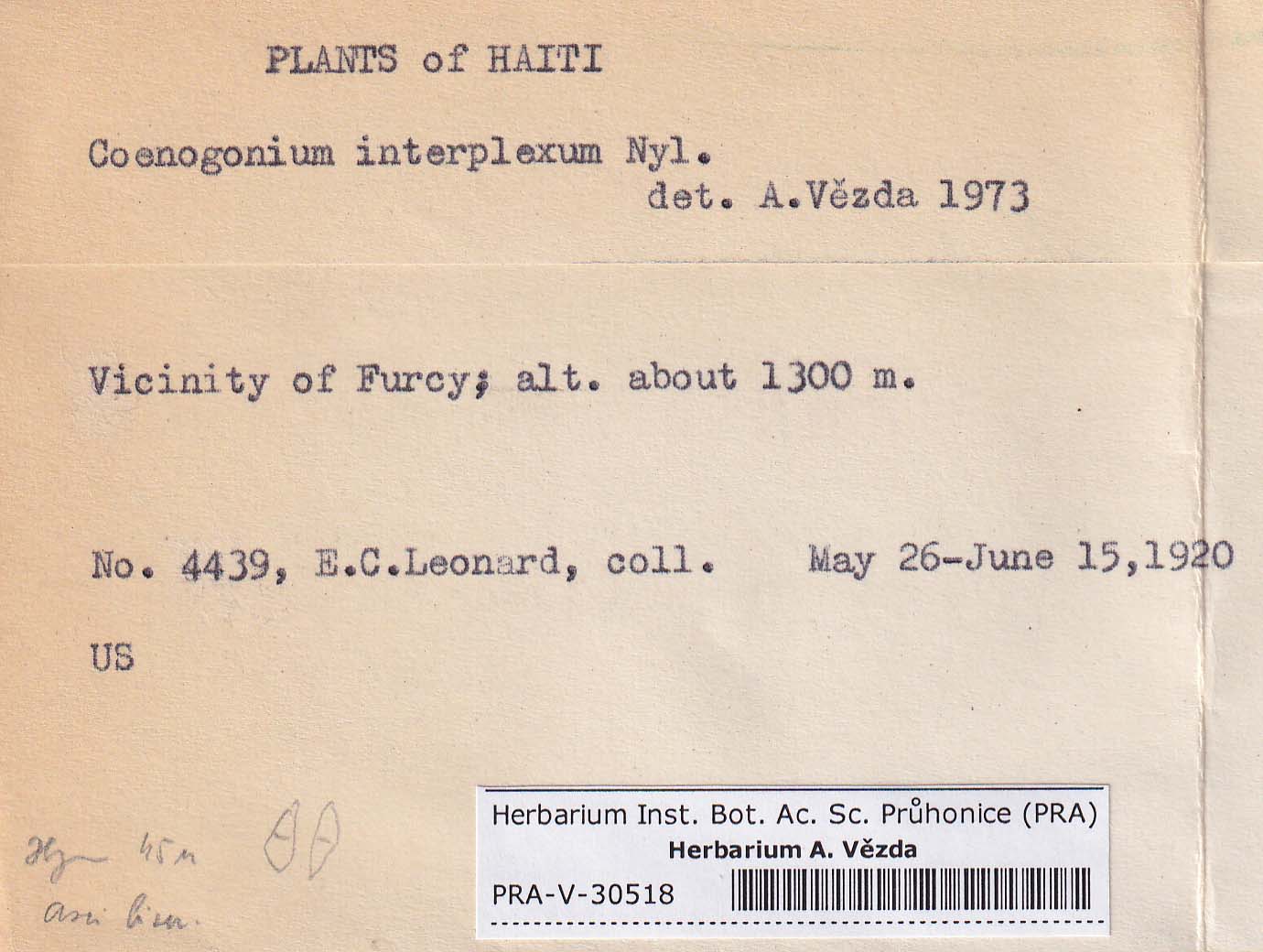 - Deposited in parcel no.94 Absconditella,Coenogonium,Pachyphiale