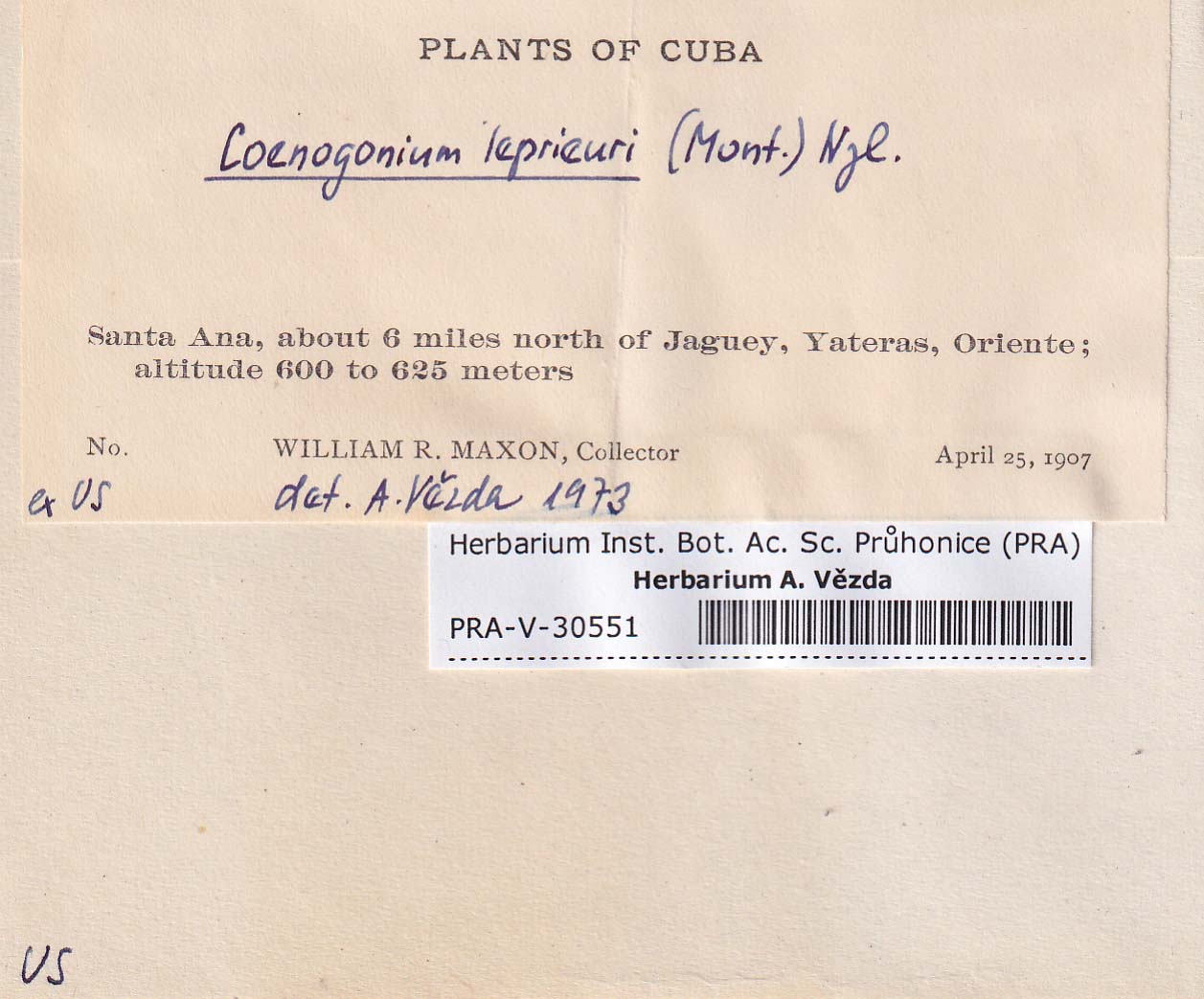 - Deposited in parcel no. 94 Absconditella, Coenogonium, Pachyphiale