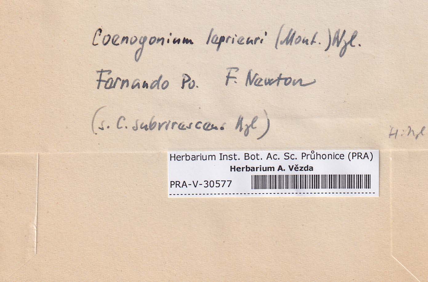 - Deposited in parcel no. 94 Absconditella, Coenogonium, Pachyphiale