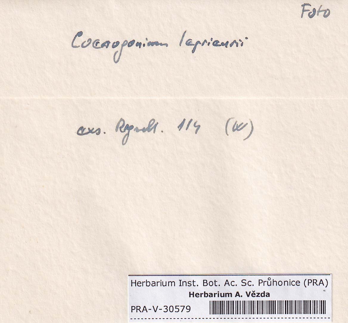 - Deposited in parcel no. 94 Absconditella, Coenogonium, Pachyphiale