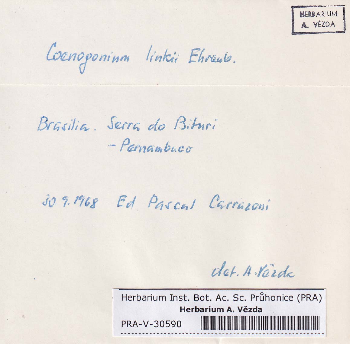 - Deposited in parcel no. 94 Absconditella, Coenogonium, Pachyphiale
