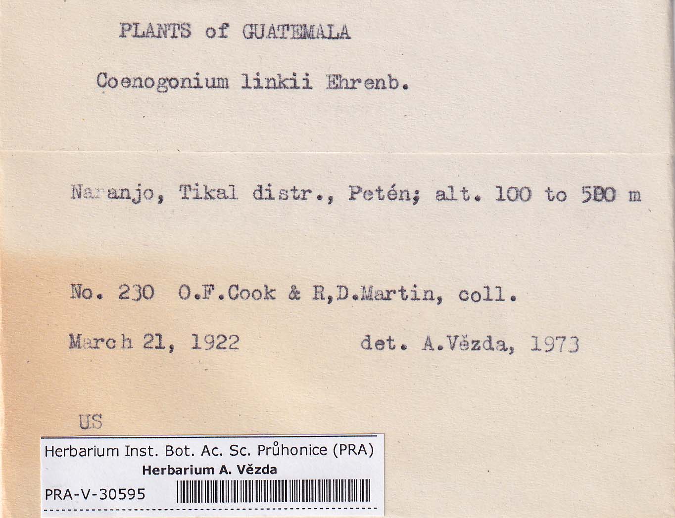 - Deposited in parcel no. 94 Absconditella, Coenogonium, Pachyphiale