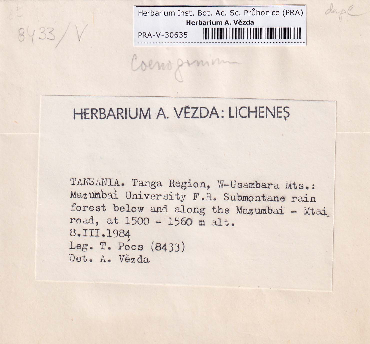 - Deposited in parcel no. 94 Absconditella, Coenogonium, Pachyphiale