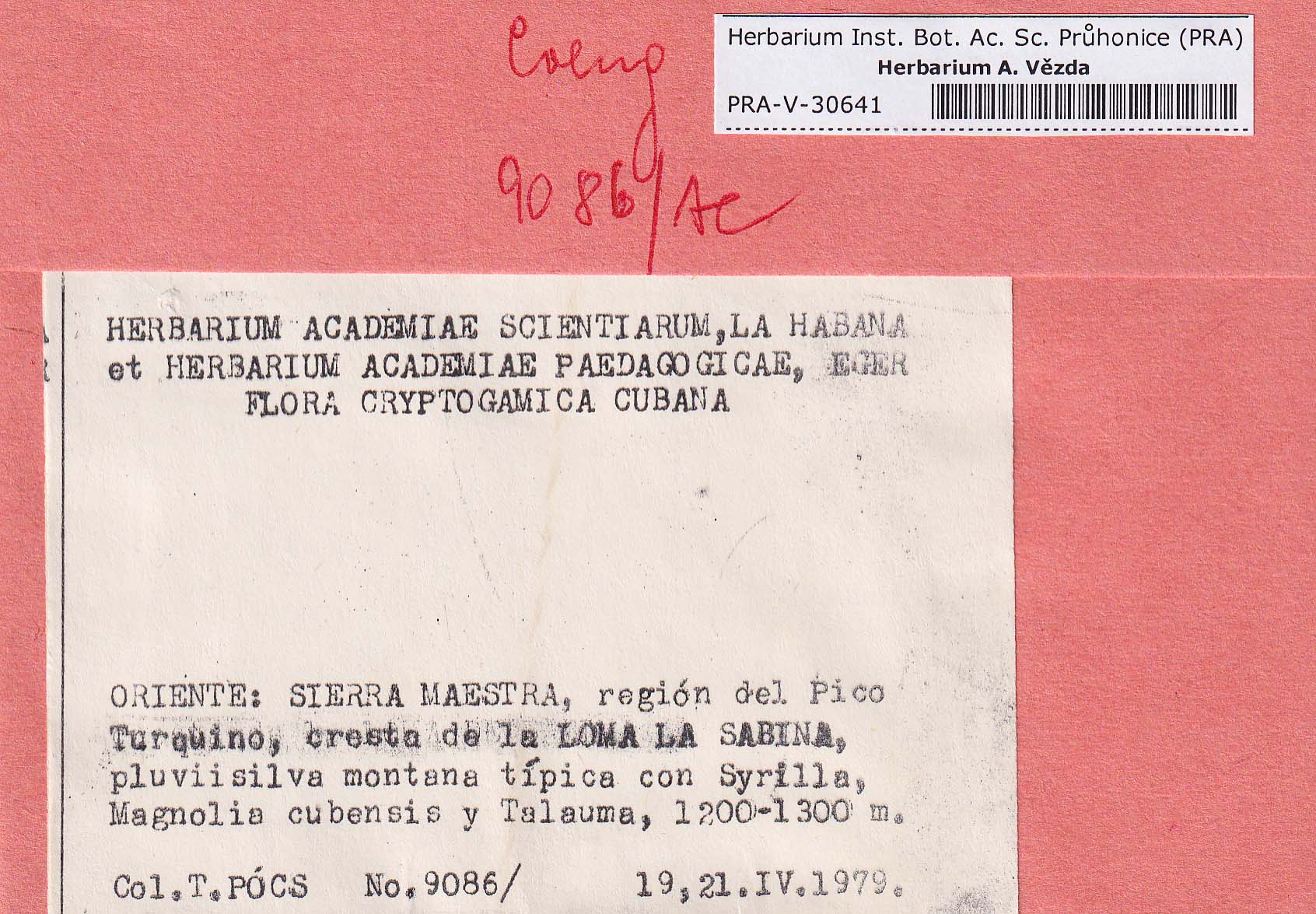 - Deposited in parcel no. 94 Absconditella, Coenogonium, Pachyphiale