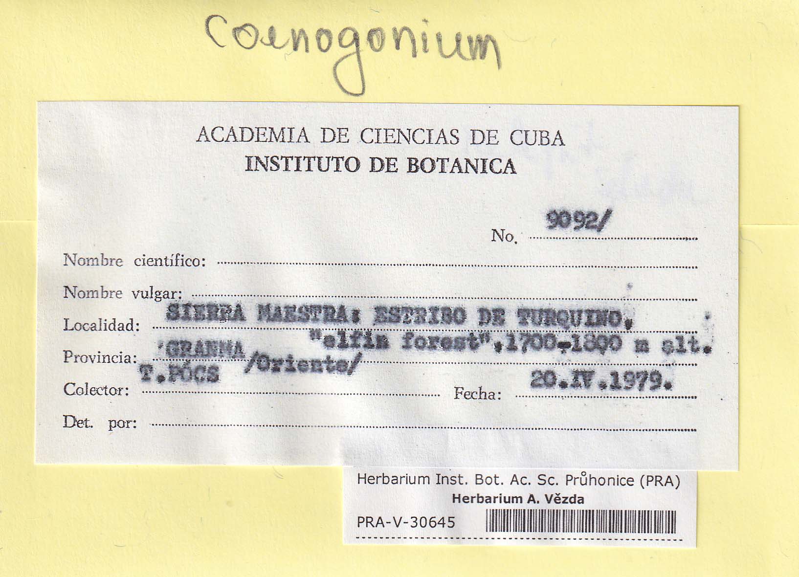 - Deposited in parcel no. 94 Absconditella, Coenogonium, Pachyphiale