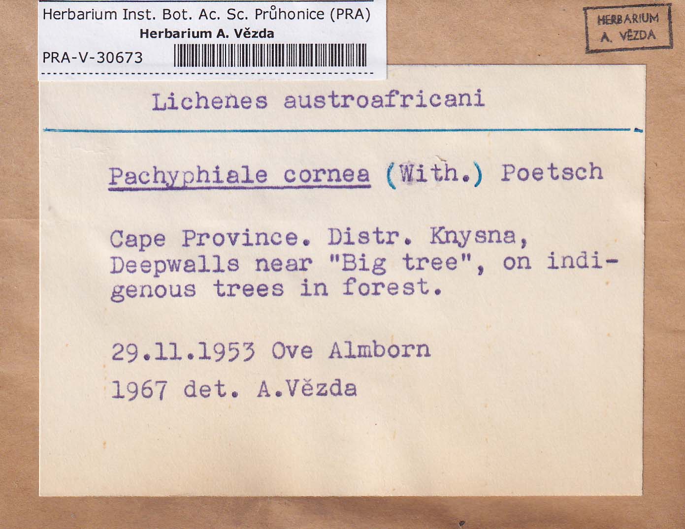 - Deposited in parcel no. 94 Absconditella, Coenogonium, Pachyphiale