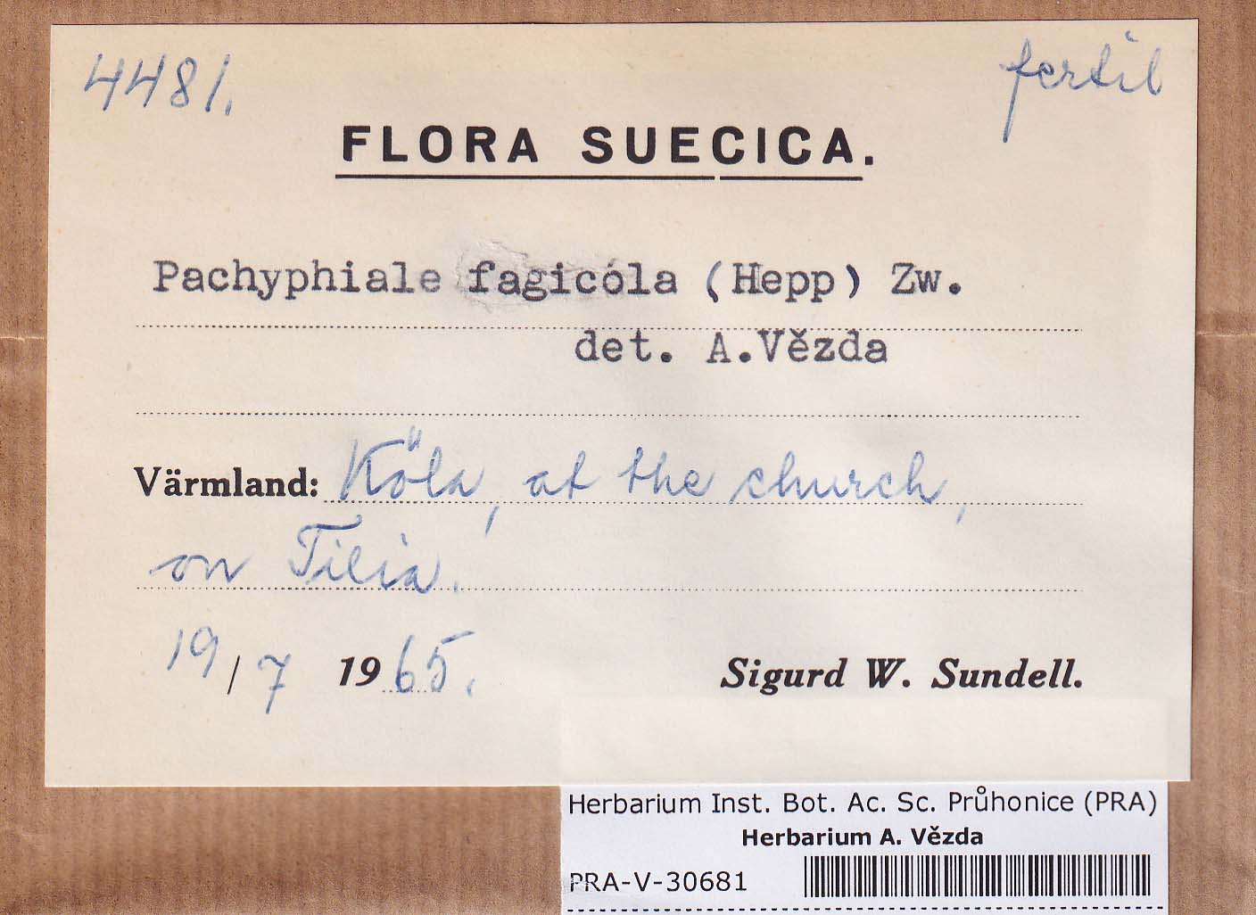 - Deposited in parcel no. 94 Absconditella, Coenogonium, Pachyphiale