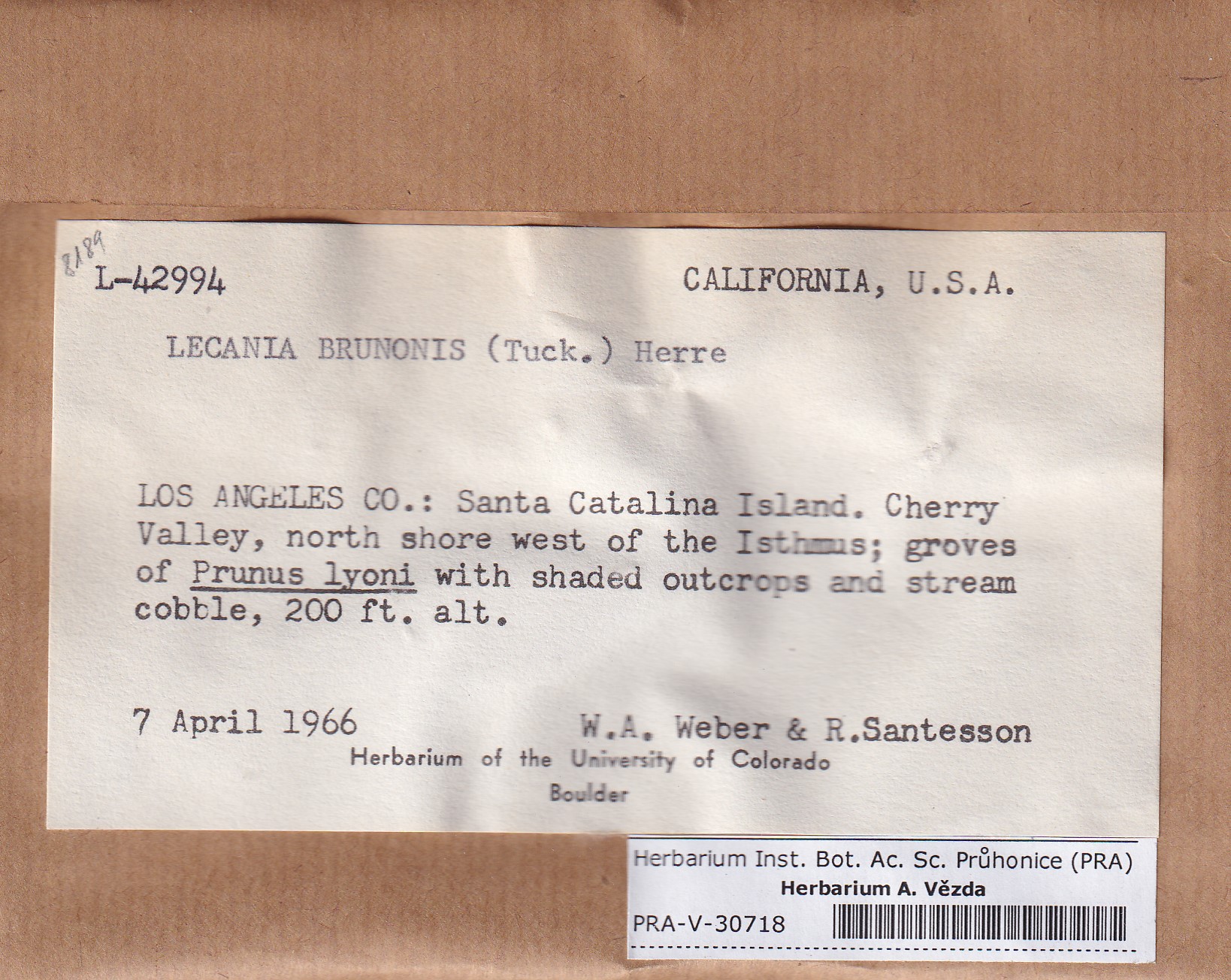 - Deposited in parcel no.95 Lecania, Thamnolecania