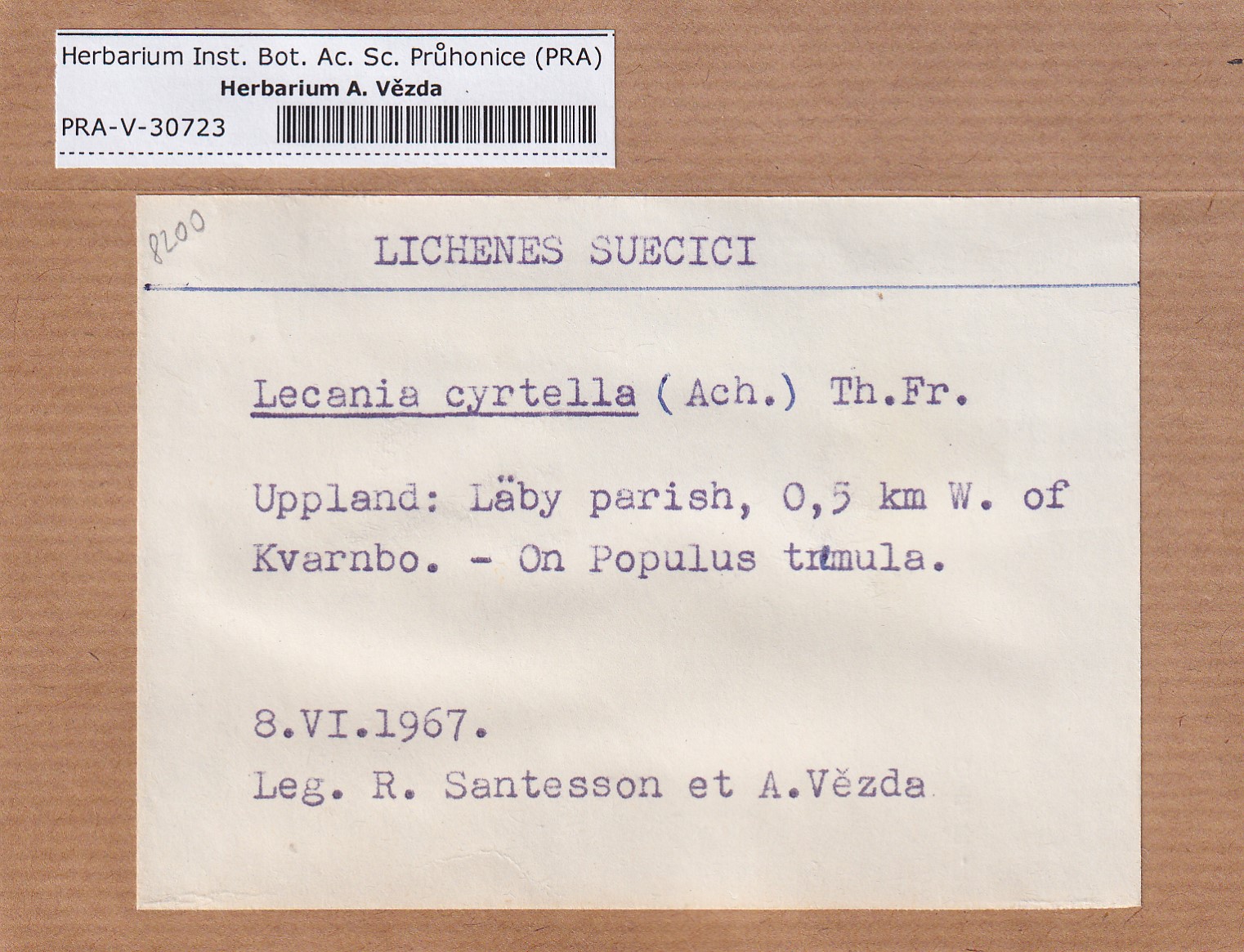 - Deposited in parcel no.95 Lecania, Thamnolecania