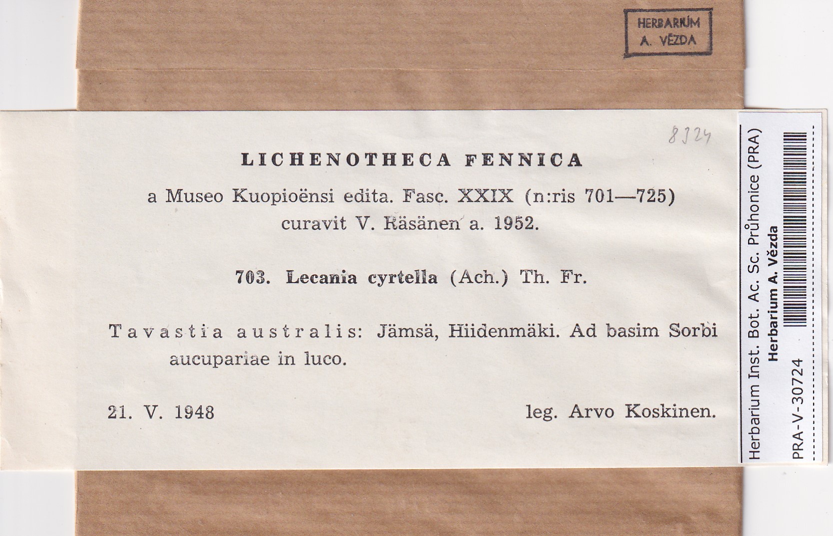 - Deposited in parcel no.95 Lecania, Thamnolecania