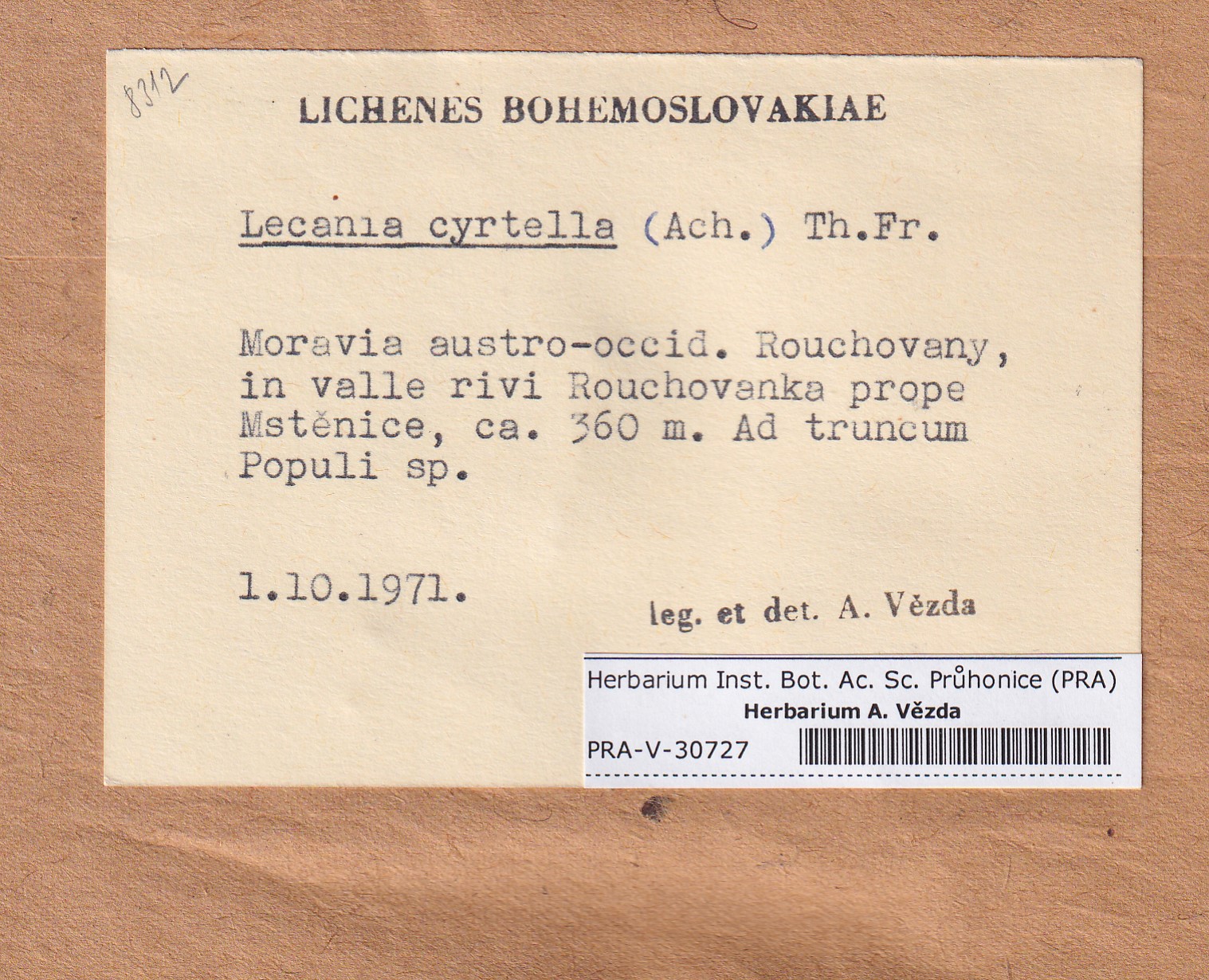 - Deposited in parcel no.95 Lecania, Thamnolecania