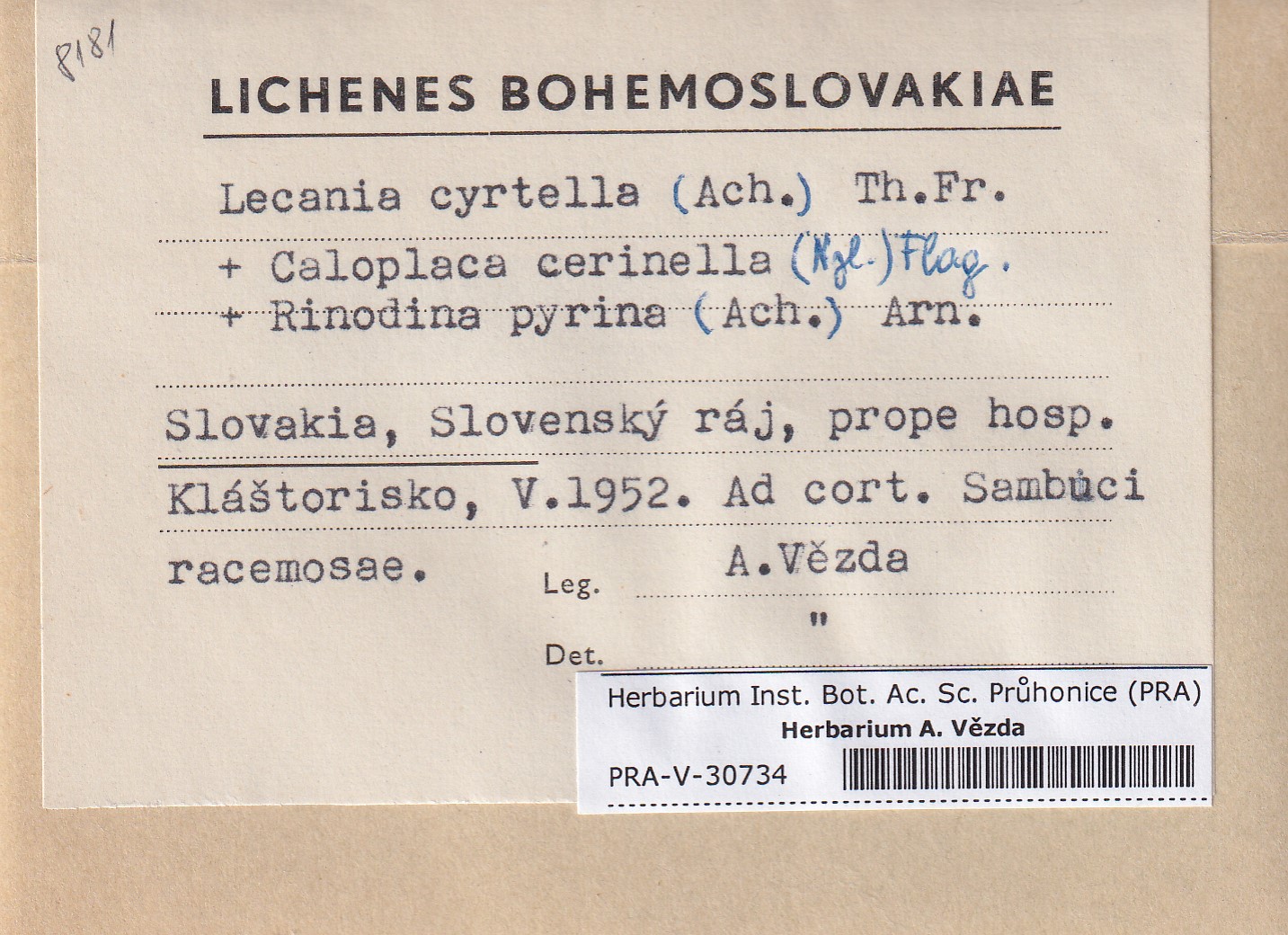 - Deposited in parcel no.95 Lecania, Thamnolecania