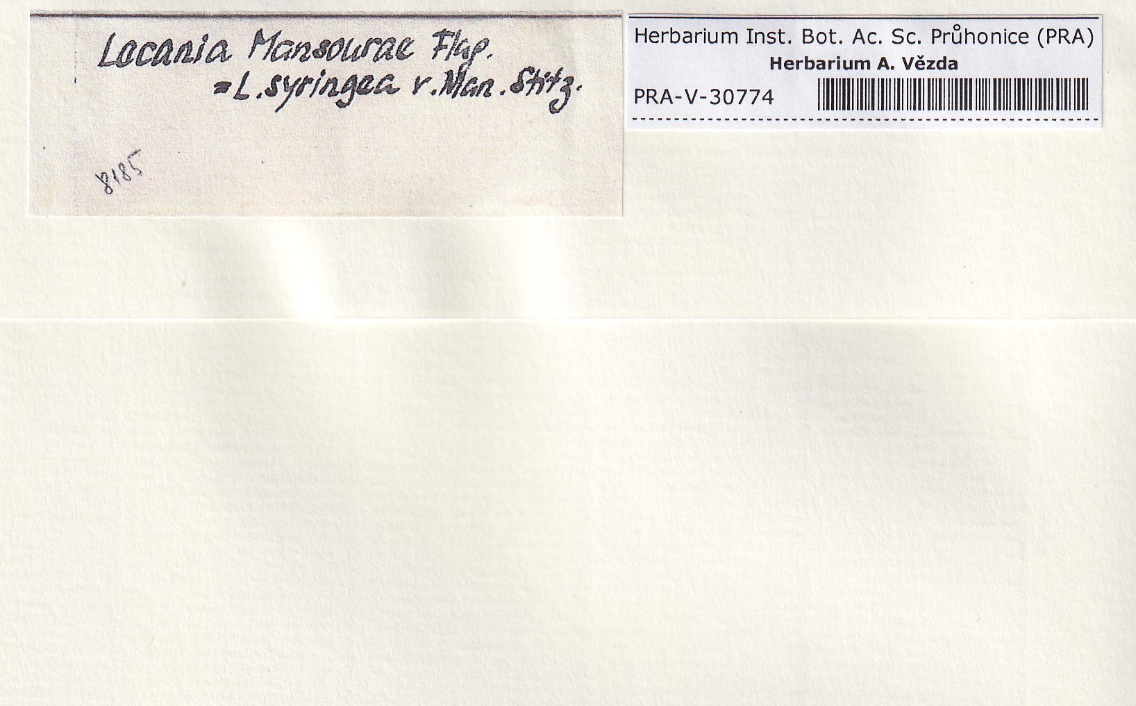 - Deposited in parcel no.95 Lecania, Thamnolecania