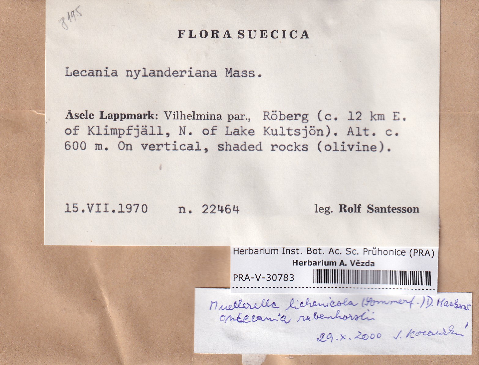 - Deposited in parcel no.95 Lecania, Thamnolecania