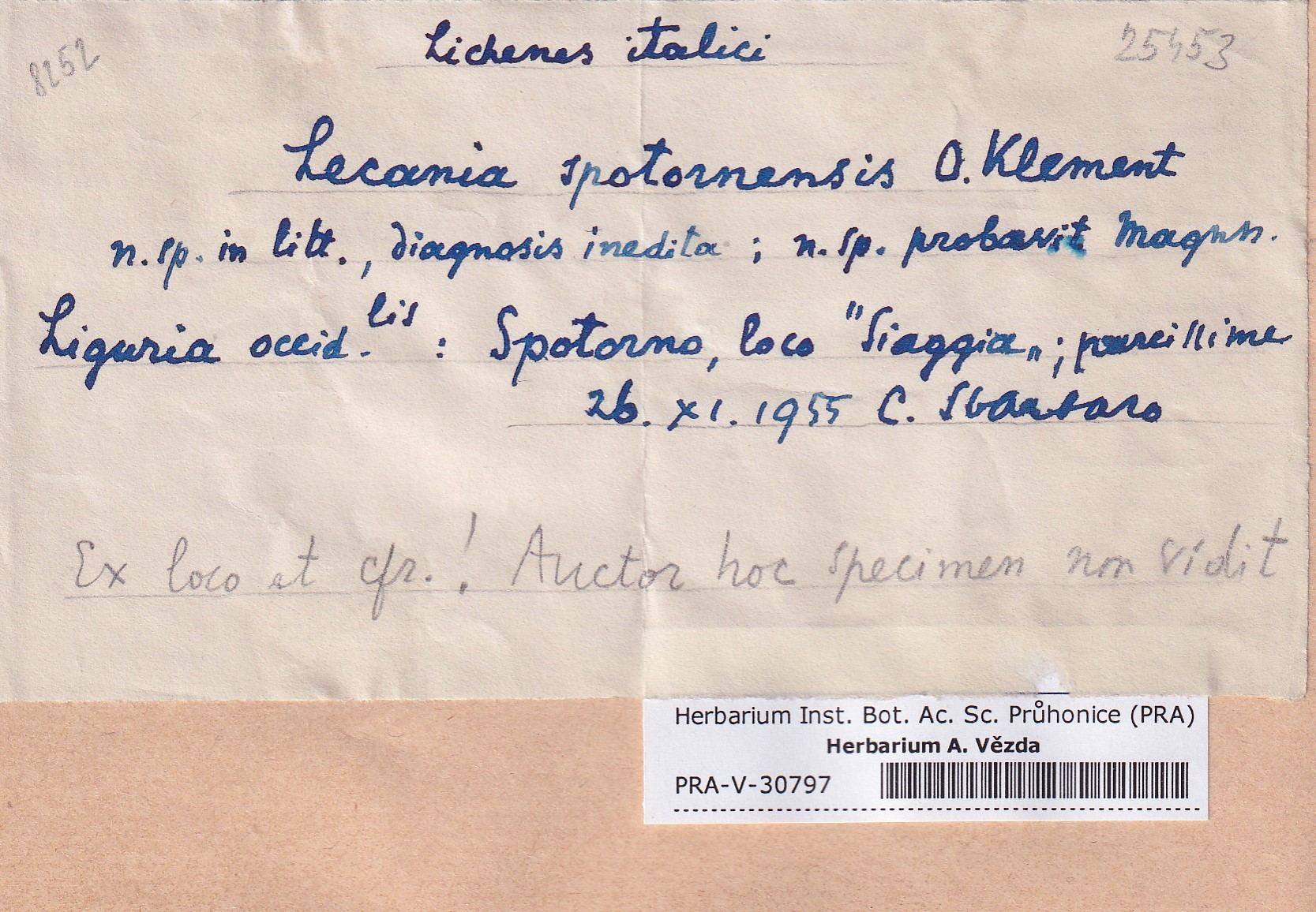 - Deposited in parcel no.95 Lecania, Thamnolecania