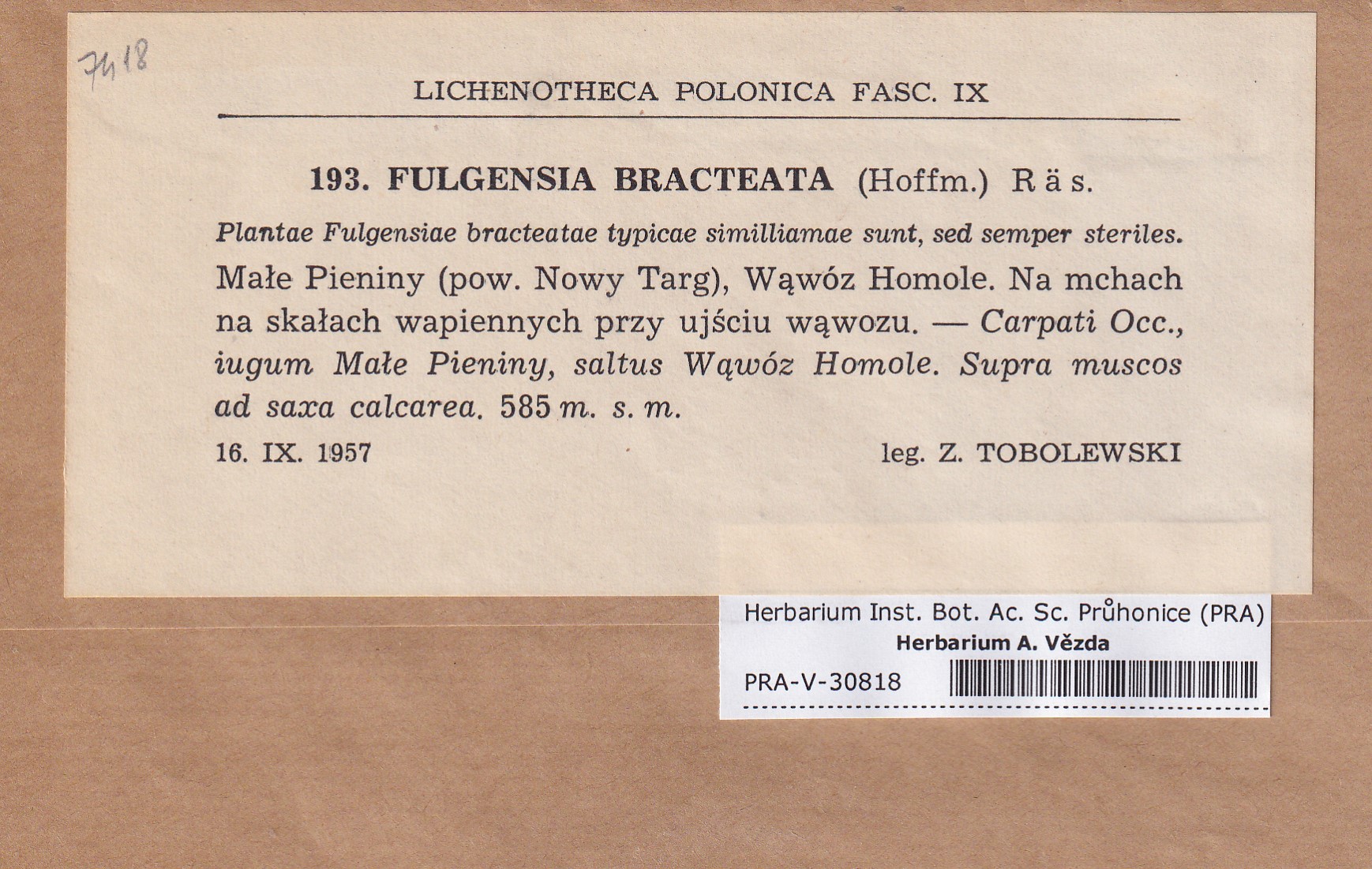 - Deposited in parcel no.96 Fulgensia, Protoblastenia