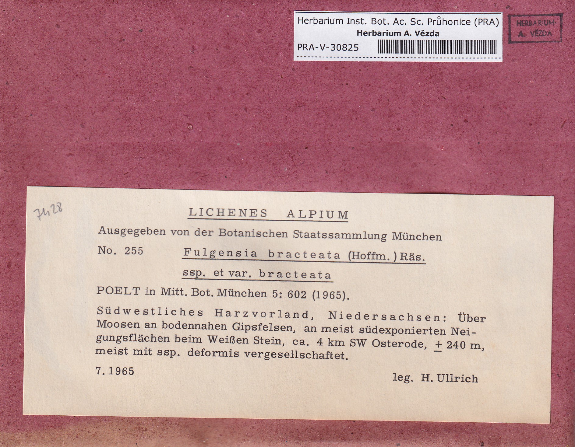 - Deposited in parcel no.96 Fulgensia, Protoblastenia