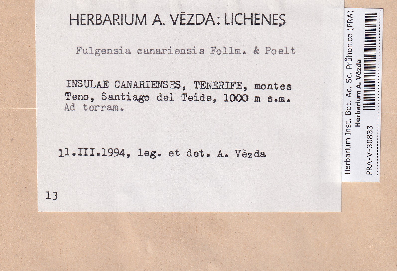- Deposited in parcel no.96 Fulgensia, Protoblastenia