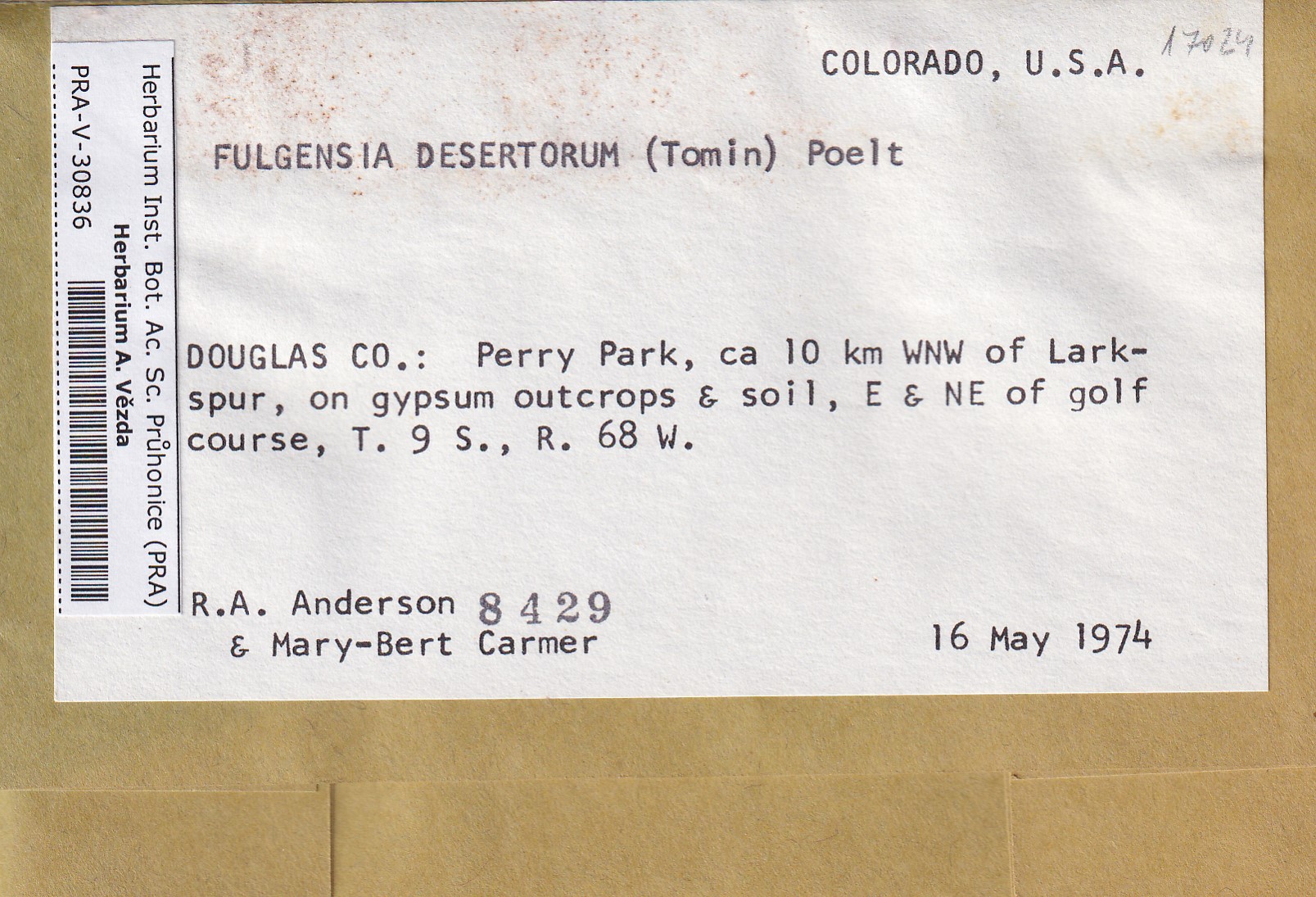 - Deposited in parcel no.96 Fulgensia, Protoblastenia
