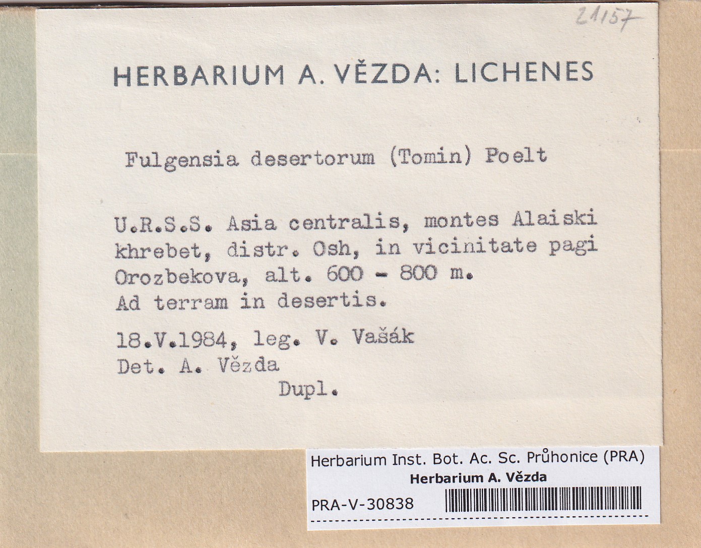 - Deposited in parcel no.96 Fulgensia, Protoblastenia