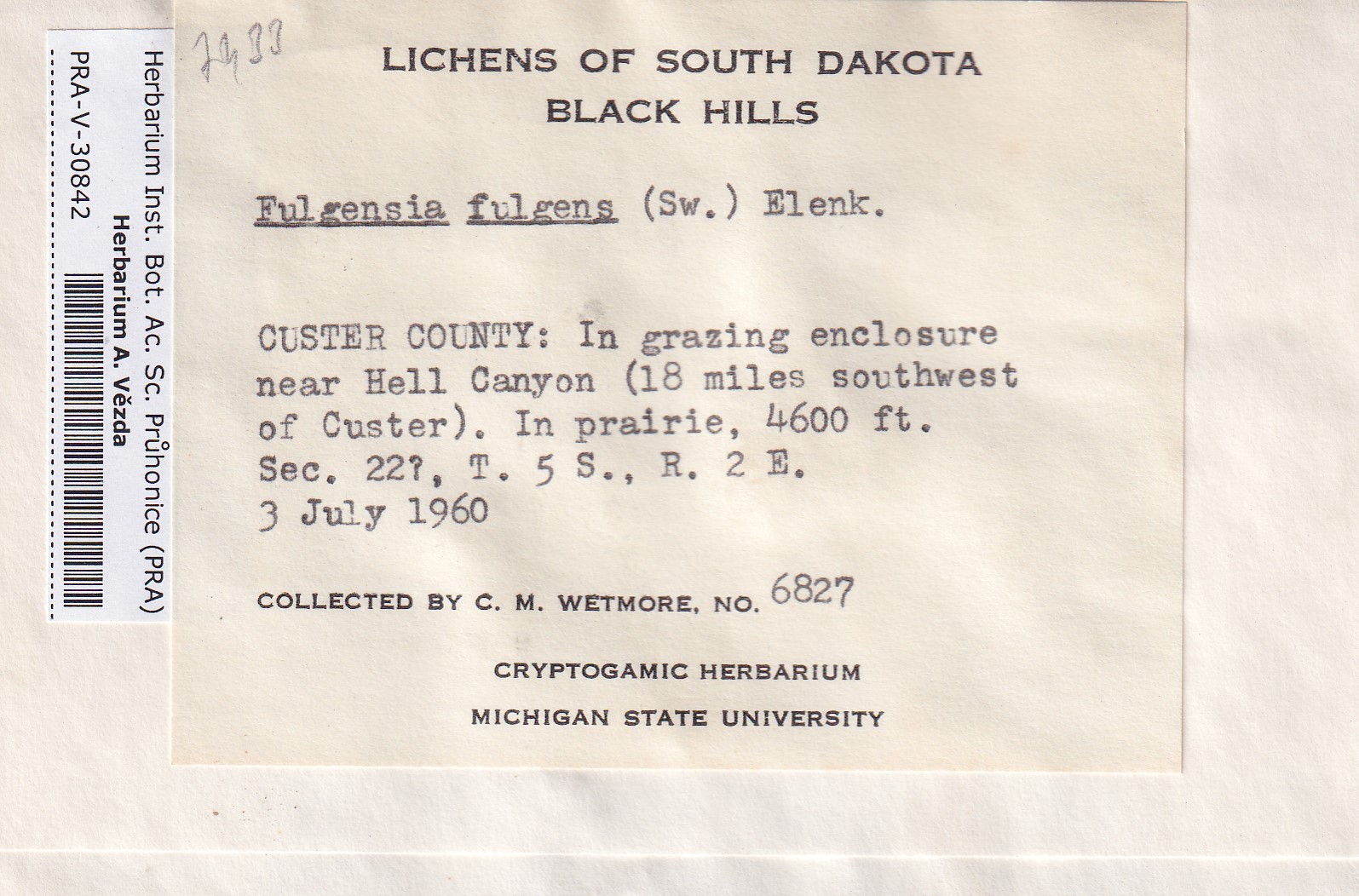 - Deposited in parcel no.96 Fulgensia, Protoblastenia
