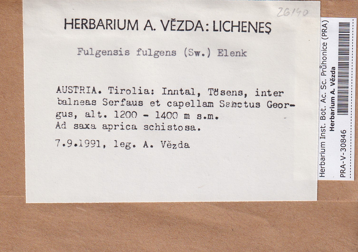 - Deposited in parcel no.96 Fulgensia, Protoblastenia