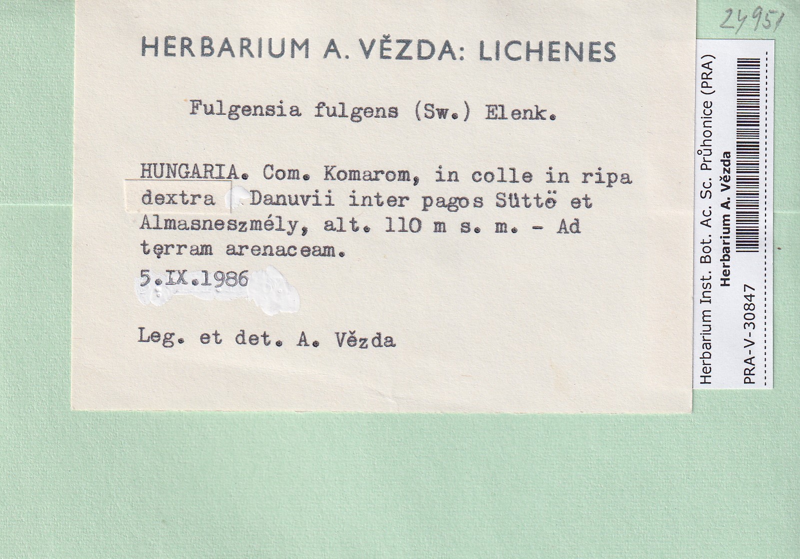 - Deposited in parcel no.96 Fulgensia, Protoblastenia