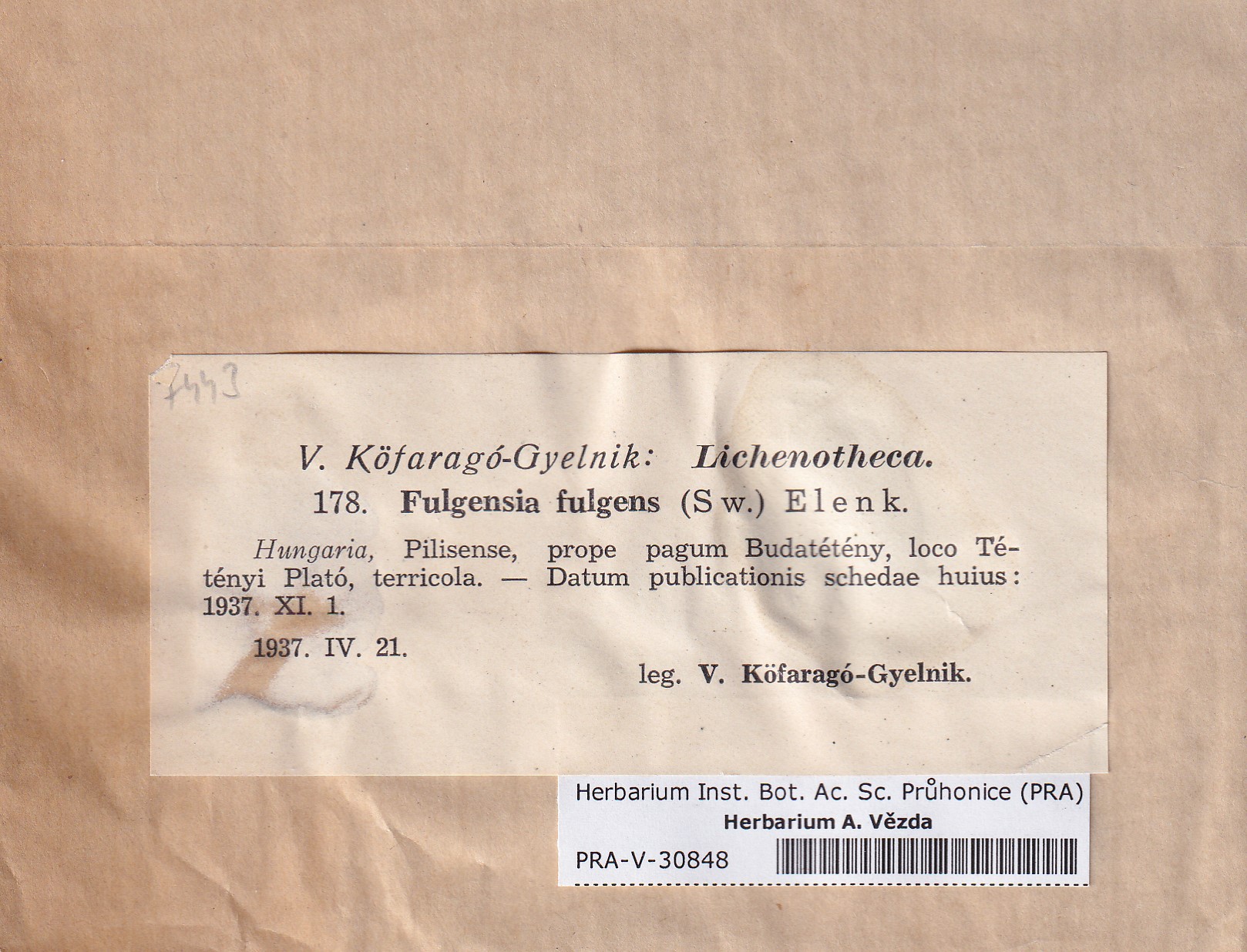 - Deposited in parcel no.96 Fulgensia, Protoblastenia