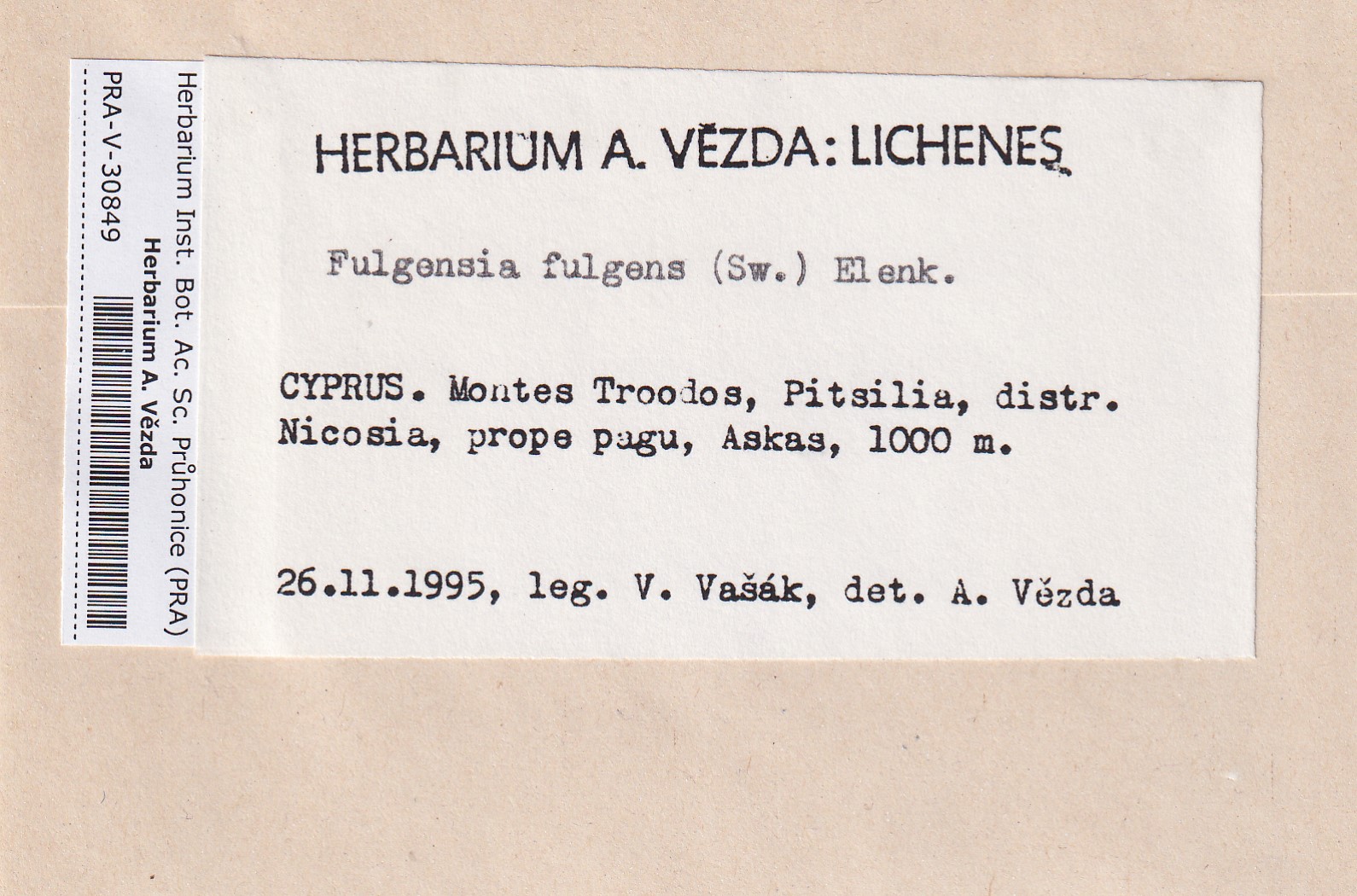 - Deposited in parcel no.96 Fulgensia, Protoblastenia