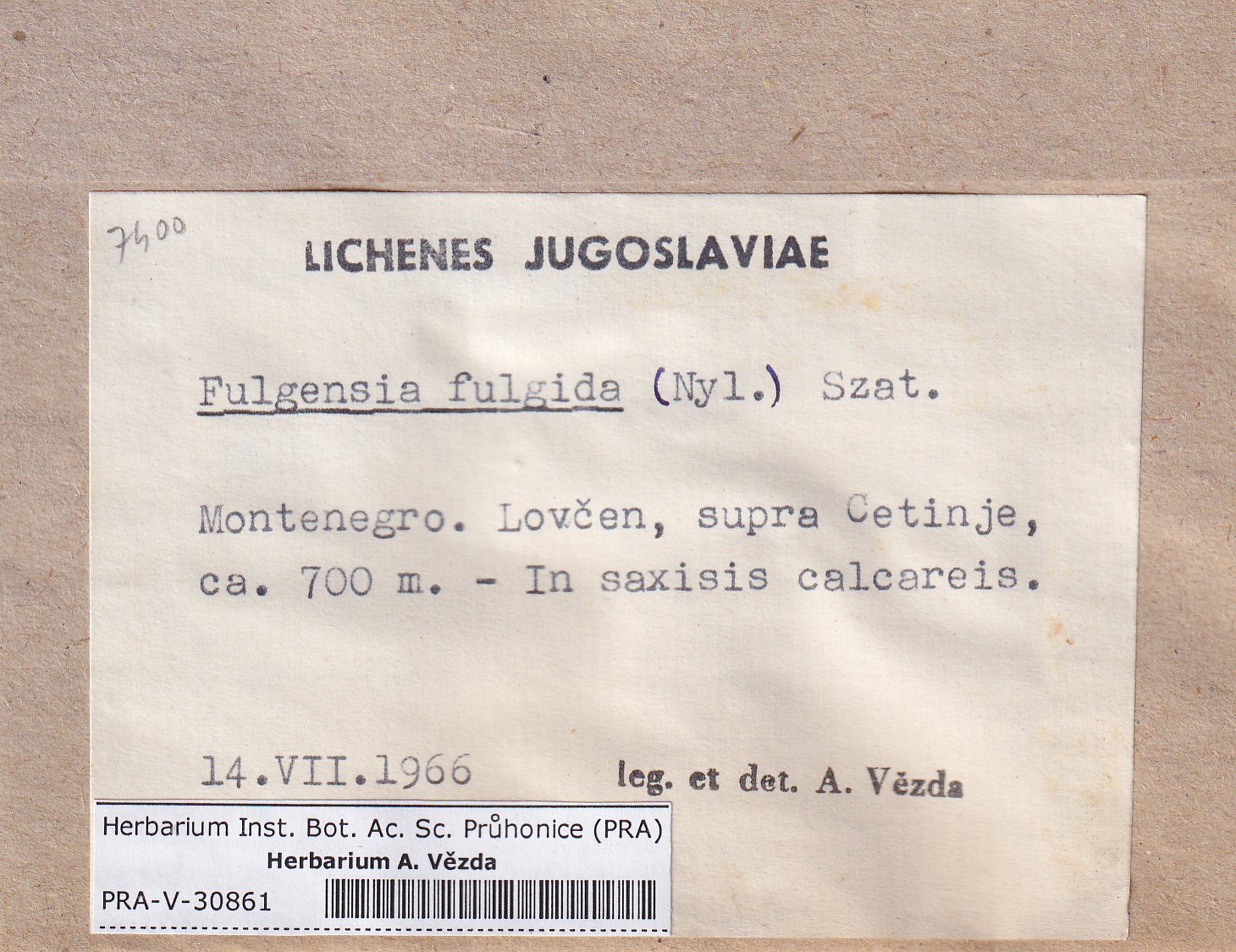 - Deposited in parcel no.96 Fulgensia, Protoblastenia