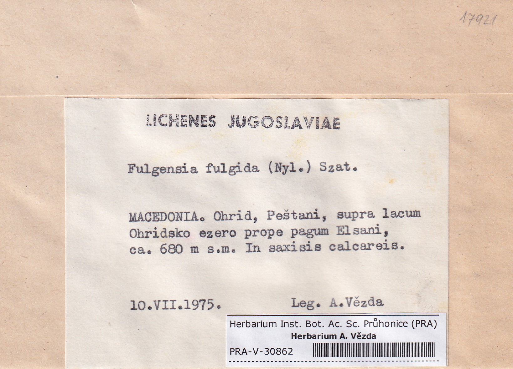 - Deposited in parcel no.96 Fulgensia, Protoblastenia