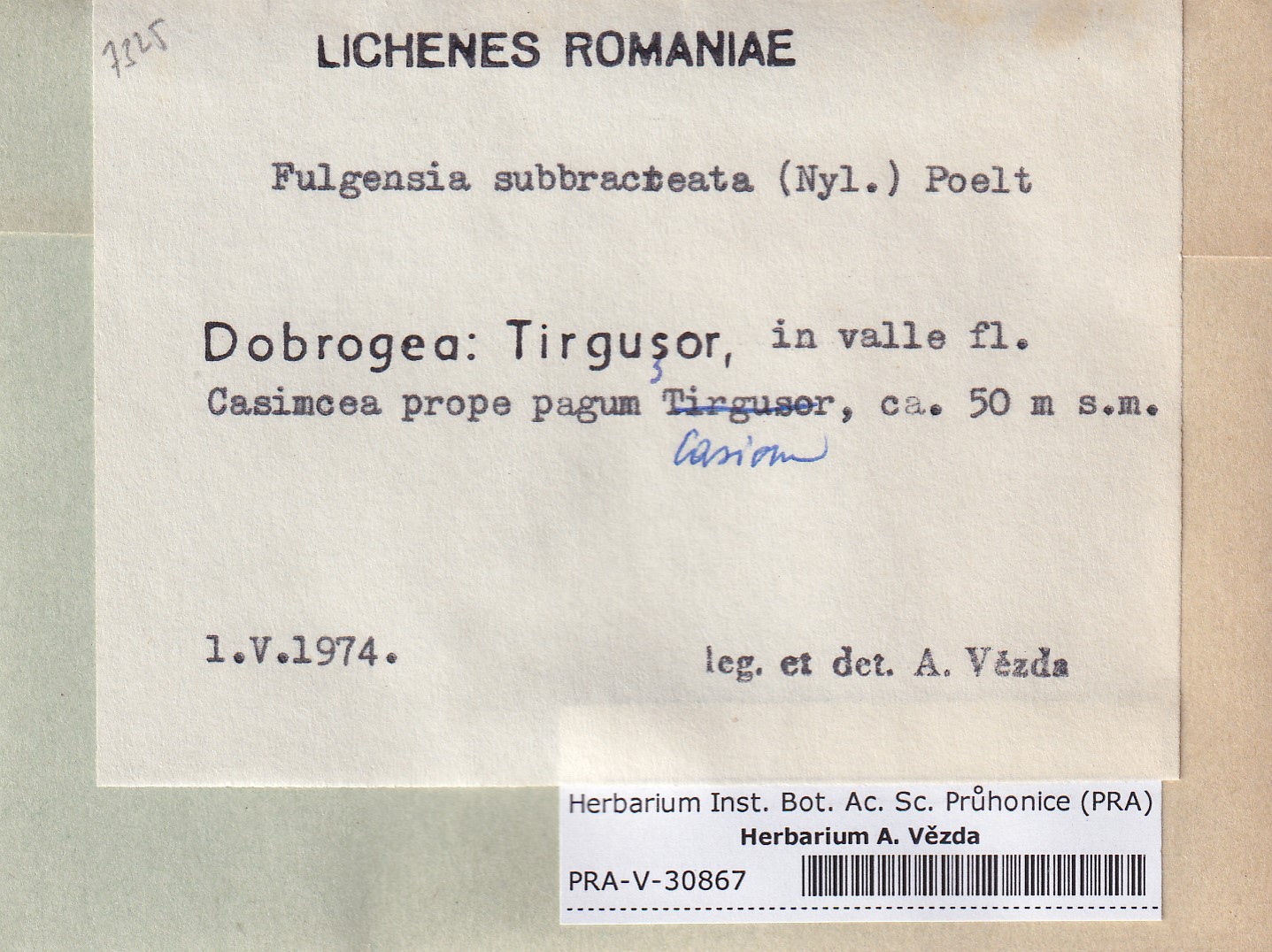 - Deposited in parcel no.96 Fulgensia, Protoblastenia