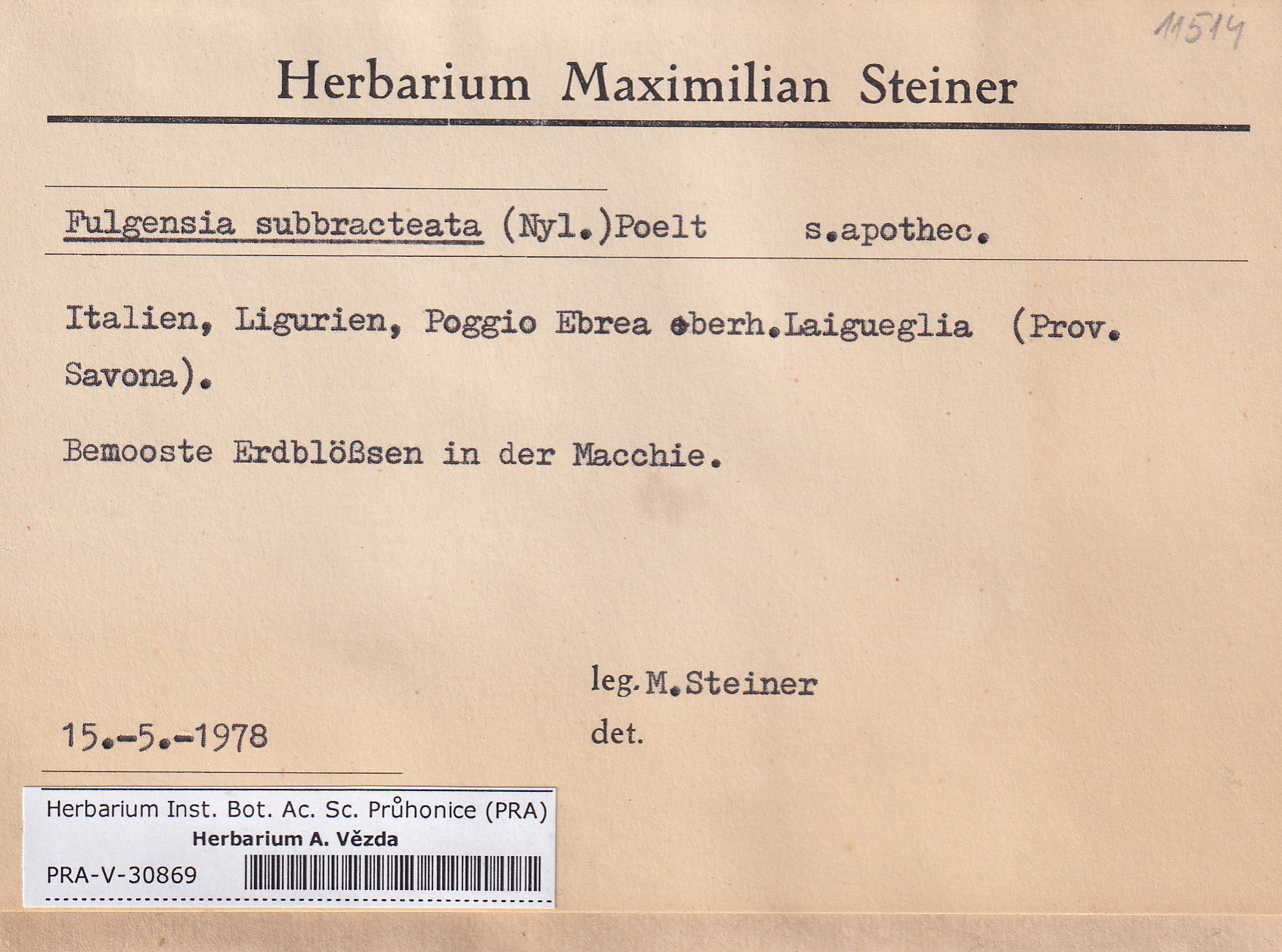 - Deposited in parcel no.96 Fulgensia, Protoblastenia