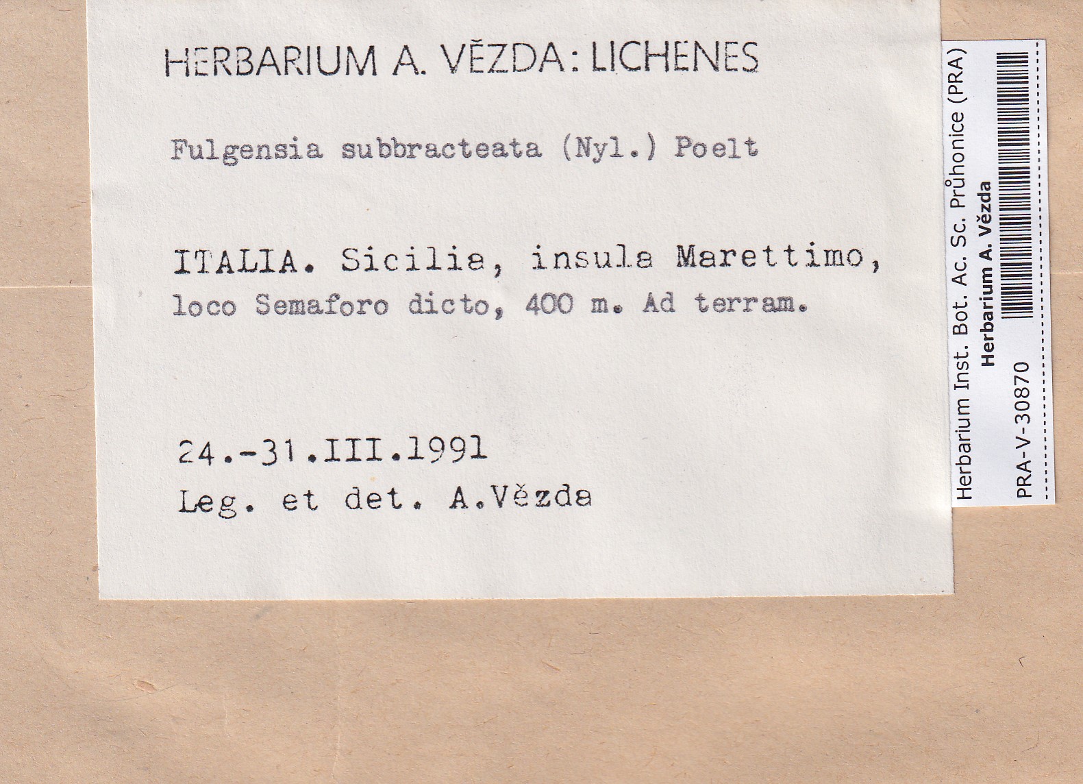 - Deposited in parcel no.96 Fulgensia, Protoblastenia