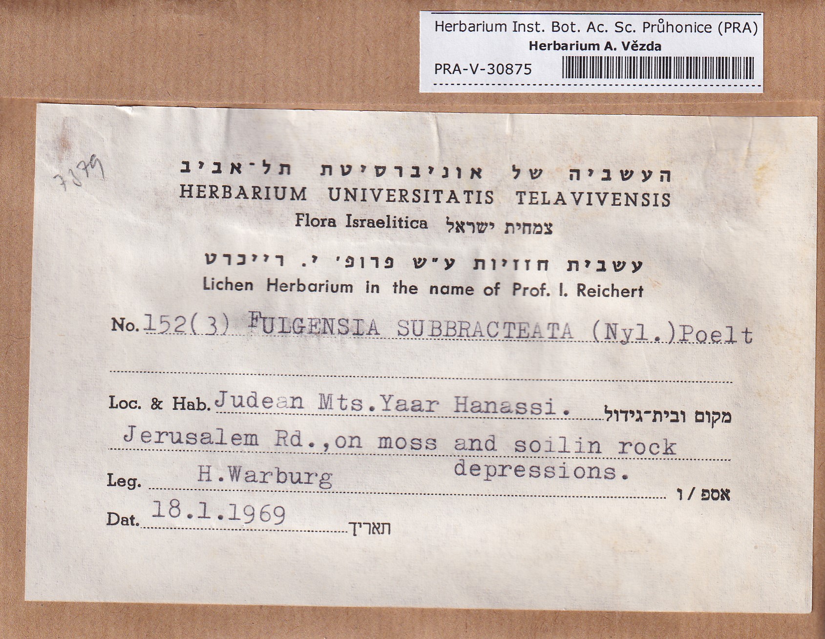 - Deposited in parcel no.96 Fulgensia, Protoblastenia